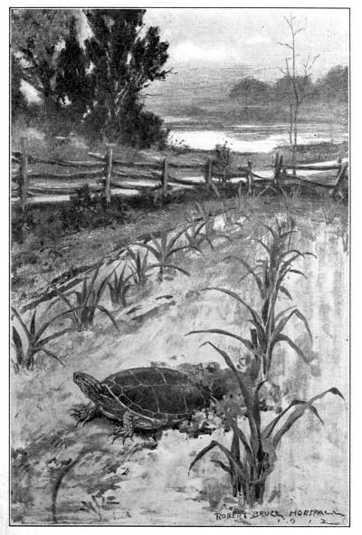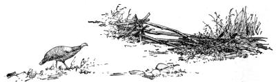 Meantime watch your turkey-hen, how she saunters down the field alone, how pensive she looks, how lost for something to do and somewhere to go. She is sick with this disease of spring. Follow her, keeping out of sight yourself, and lo, a nest, hidden under a pile of brush in a corner of the pasture fence, half a mile from home!