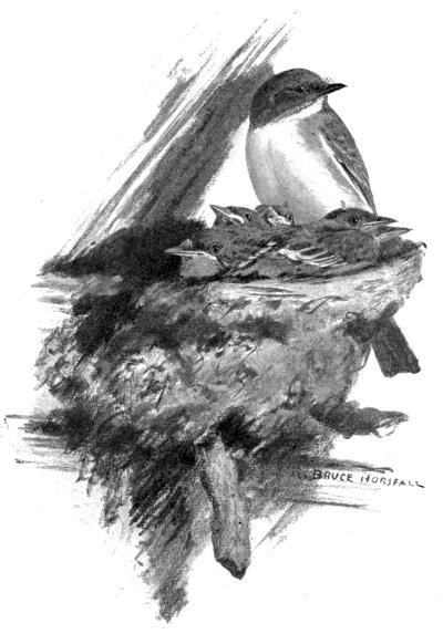 I called this chapter when I first wrote it “The Friendship of Nature”—a much used title, but entirely suggestive of the thought and the lesson in the story here. This was first written about six years ago, and to-day, May 12, 1912, that pair of phœbes, or another pair, have their nest out under the pig-pen roof as they have had every year since I have known the pen. Repeat and expand the thought as I have put it into the mouth of Nature in the first paragraph—“We will share them [the acres] together.” Instill into your pupils’ minds the large meaning of obedience to Nature’s laws and love for her and all her own. Show them also how ready Nature is (and all the birds and animals and flowers) to be friendly; and how even a city dooryard may hold enough live wild things for a small zoo. This chapter[Pg 143] might well be made use of by the city teacher to stir her pupils to see what interesting live things their city or neighborhood has, although the woods and open fields are miles away.
