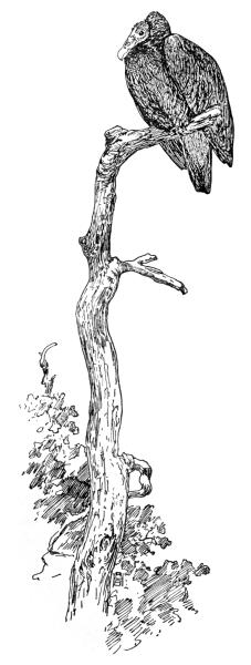 The picture of the young buzzard is as true as a photograph; the bumped-up drawing of the old bird looks precisely as she did atop her dead tree, watching my approach. This vulture rarely soars into New England skies; down South, especially along the coast, the smaller black vulture (Catharista urubu) is found very tame and in great abundance; while in the far Southwest lives the great condor.