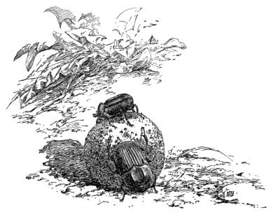 June-bug: the very common brown beetle whose big white grubs you dig up under the sod and in composts.