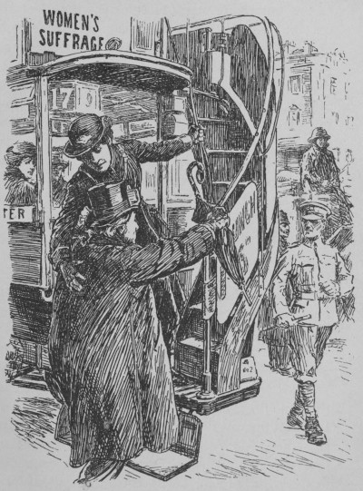 Looking back over the last years of our struggle, we could not but see that our chief antagonist was Mr. Asquith. Opposition from a Liberal, with all the Liberal traditions of devotion to the principles of representative government and a wide suffrage, was far more damaging to our cause than opposition from Conservatives. It was Mr. Asquith, more [14]than any other one person, who prevented the Liberal Party becoming a Reform Party, and including women in their general scheme of enfranchisement. In 1906, very shortly after the unprecedented Liberal triumph of that year, the Liberals returned were by an immense majority supporters of the enfranchisement of women. Sir Henry Campbell-Bannerman, the Prime Minister, was one of these, and received a large representative suffrage deputation in May of that year. He told them that they had made out a "conclusive and irrefutable case," but promised them no practical action whatever from the Government of which he was the head; the only advice which he gave the deputation was that they should go on "pestering." He evidently thought that the best course for suffragists to pursue was to make themselves as great a nuisance as possible until their claim was granted. There must have been obstacles in his own Government which prevented his giving us any more favourable answer, and there can be little doubt that these obstacles were not so much to be found among the Harcourts and the Hobhouses, but in the more formidable personality of his Home Secretary, Mr. Asquith, who was destined, as events proved, within less than two years to be his successor as Prime Minister. Mr. Asquith had no grasp whatever of the significance of our movement. When what was called "militancy" came upon the [15]scene, very much encouraged, of course, by Sir H. Campbell-Bannerman's speech, he did not attribute it, as he should have done, to the consequences of justice long delayed; he saw nothing in it but a means of defeating the whole movement, opportunities for covering its supporters with ridicule and himself with additional prestige. Thus he would in a public speech compare himself with Orpheus, and the whole suffrage party—for he then made no distinction between militants and non-militants—with the wild women of Thrace. We were "the rout that made the hideous war," and he, with mock humility, our victim. He never really understood the social and educational changes in the position of women which had been going on for the last two generations, and made a corresponding change in their political status an urgent necessity. One of his chief weapons against us was this assumed inability to distinguish between the militants and non-militants, and this was quite as much marked in the early stages of the militant movement, when nothing more tragic had been done than asking inconvenient questions at meetings, waving flags, and making speeches in the lobby of the House, and so forth, as it was later, when the militant movement became month by month increasingly aggressive and dangerous. A statesman, whether in England, India, Ireland, or Egypt, face to face with grave and persistent disorder, while [16]taking immediate steps to restore order, does not content himself with the mere employment of physical force; he enquires into the moral causes of the disorder, and seeks by wise legislation to remove them. This Mr. Asquith never did in regard to women; for his eleventh hour conversion to women's suffrage, although welcome, was more then for his own good than ours. Punch's picture of the "Conductorette" helping Mr. Asquith into the suffrage bus, with the exclamation, "Come along, sir; better late than never," exactly described his position in 1917.