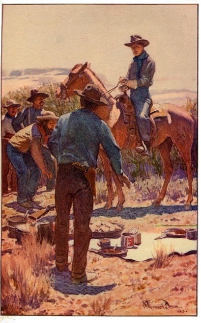 “Say, partner,” he began, his big mountain voice 14 tamed down to a masterful calm, “won’t you come over and have something with us?”