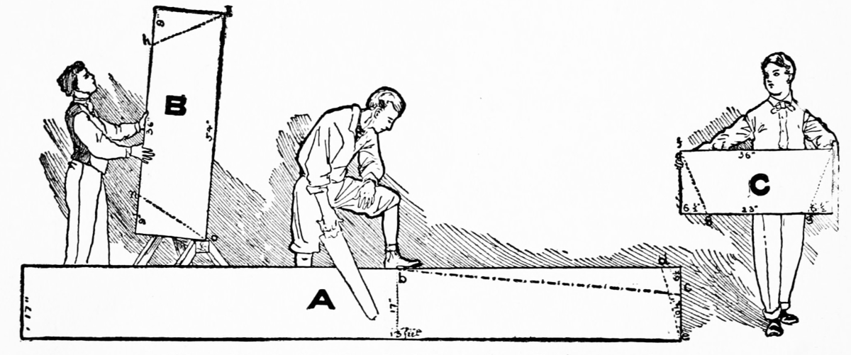 Fig. 237 shows a piece of 2-inch board and a method of sawing it to make the duplicate pieces to form the engine-bed. The dimension of these pieces must be obtained by measuring the width of the engine rest, which is to be installed. The angle, of course, must correspond to the angle of the shaft.