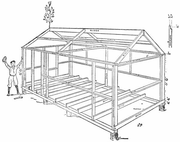 | How to Make Buildings Plumb and Level, 72; Tools, 73; A Level, 74; A Foundation, 76; How to Build the House, 77; Corner Posts, 81; The Window, 82; Side Plate, 82; The Rafters, 84; Machine-Shop, 85; Tool Rack, 86. | |
