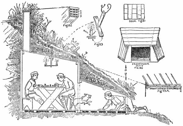 Tree-Top Club-Houses—How to Capture and Trap Small Live Animals—The Back-Yard Zoo—A Back-Yard Fish-Pond—Pigeon and Bantam Coops—How to Make a Back-Yard Aviary—A Boy’s Back-Yard Workshop—How to Build an Underground Club-House—A Boys’ Club-House on the Water—How to Have Fun on a Picnic—How to Build and How to Furnish a Daniel Boone Cabin—Flat Boatman’s House—The American Boy’s House Boat—Back-Yard Switchback—How to Build a Toboggan Slide in the Back-Yard.