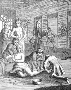 There is no doubt that in these prescriptions a distinction was made between persons who were regarded as possessed and those supposed to be lunatics. For the latter, however, the ecclesiastical element came in as well as the medical one. Herbs were prescribed which were to be mixed with foreign ale and holy water, while masses were sung over the patient "Let him drink this drink," say they, "for nine mornings, at every one fresh, and no other liquid that is thick and still; and let him give alms [6] and earnestly pray God for his mercies." The union of ale and holy water forms an amusing, though unintentioned, satire on the jovial monk of the Middle Ages. I may remark that the old Saxon term "wood" is applied in these recipes to the frenzied. It survives in the Scotch "wud," i.e. mad.[12] Thus for the "wood-heart" it is ordered that "when day and night divide, then sing thou in the Church, litanies, that is, the names of the hallows (or saints) and the Paternoster." This was, as usual, accompanied by the taking of certain herbs and drink. In some instances, a salve was to be smeared on the temples and above the eyes. Medicated baths were not omitted in their prescriptions. Thus for a "wit-sick man," as they call him, they say, "Put a pail full of cold water, drop thrice into it some of the drink, bathe the man in the water, and let him eat hallowed bread and cheese and garlic and cropleek, and drink a cup full of the drink; and when he hath been bathed, smear with the salve thoroughly, and when it is better with him, then work him a strong purgative drink," which is duly particularized. It is unnecessary to give more of these quaint prescriptions, one of which is a drink "against a devil and dementedness" (an illustration, by the way, how the one idea ran into the other); those which I have given will suffice to show the kind of pharmacopœia in use, with the Saxon monk-doctor, for madness. But did their treatment consist of nothing more potent or severe than herbs and salves and baths? It would have [7] been surprising indeed had it not. And so we find the following decidedly stringent application prescribed:—"In case a man be lunatic, take a skin of mere-swine (that is, a sea-pig or porpoise), work it into a whip, and swinge the man therewith; soon he will be well. Amen."[13]