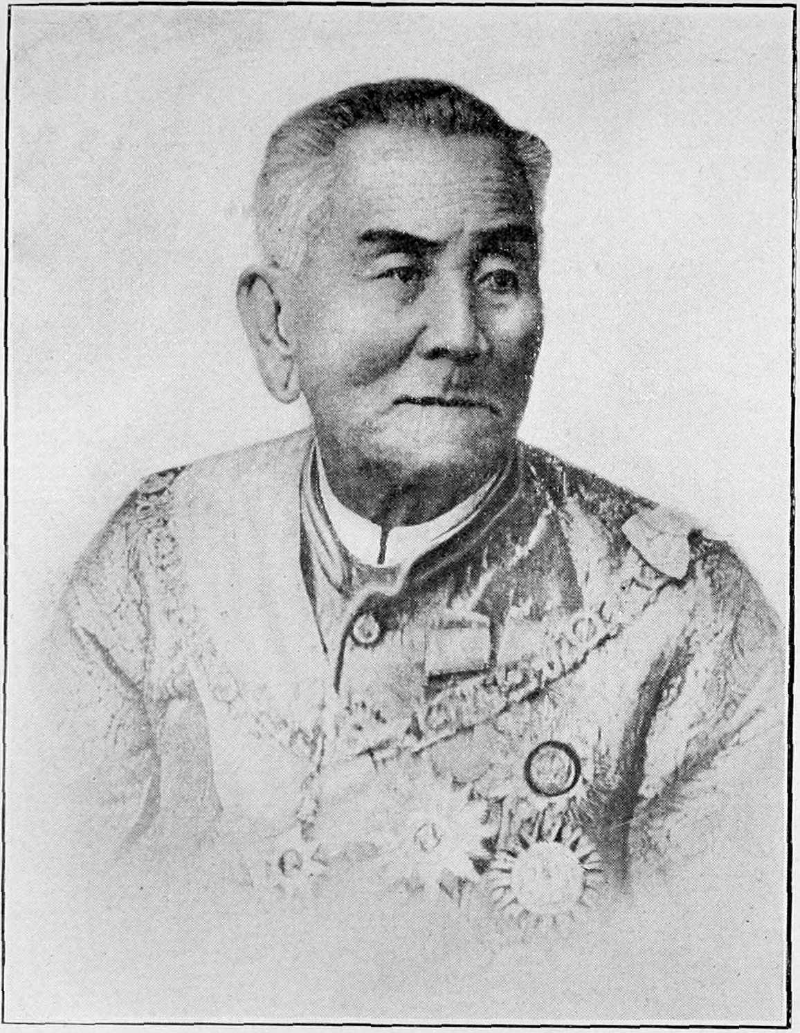 Not only the missionaries but the Lāo people loved him as a friend and venerated him as a father. Some of his intimate friends were the abbots and monks of the Buddhist monasteries and the high officials of the country. No one could know him without recognizing the nobility of soul of this saintly patriarch, in whom was no guile. December 6th, 1910, many Americans and Europeans celebrated the fiftieth anniversary of his marriage. The King of Siam through Prince Damrong, Minister of the Interior, sent a congratulatory message. Letters, telegrams, and gifts poured in from many different places. The Christian people of the city presented a large silver tray, on which was engraved: “The Christian people of Chiengmai to Dr. and Mrs. McGilvary, in memory of your having brought the Gospel of Jesus Christ to us forty-three years ago.” The tray showed in relief the old rest-house where Dr. and Mrs. McGilvary spent their first two years in Chiengmai, the residence which was later their home of many years, the old dilapidated bridge, and the handsome new bridge which spans the river opposite the Christian Girls’ School—thus symbolizing the old and the new eras.