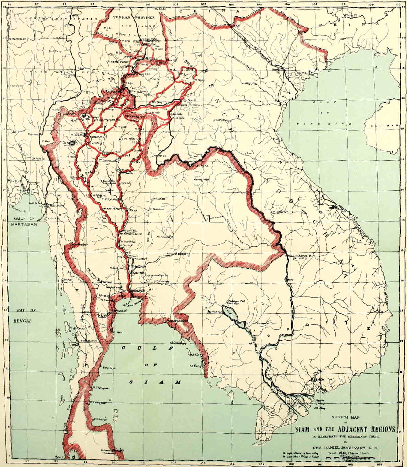 The recent tours of exploration by the Rev. W. Clifton Dodd, D.D., and the Rev. John H. Freeman have disclosed the fact that the Lāo peoples are far more numerous and more widely distributed than we had formerly supposed. Their numbers are now estimated at from twelve to sixteen millions, and their habitat includes not only the Lāo States of northern Siam but 6extensive regions north and northeastward in the Shan States, Southern China, and French Indo-China. The evangelization of these peoples is, therefore, an even larger and more important undertaking than it was understood to be only a few years ago. All the more honour, therefore, must be assigned to Dr. McGilvary, who laid foundations upon which a great superstructure must now be built.