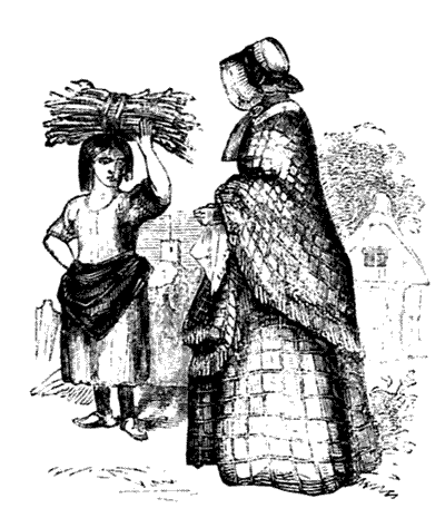 Presently they reached the cottage. There was quite a change in its looks since aunt Amy’s last visit, a few days before. The floor had been nicely cleaned, the shingles which formerly covered the broken windows had been taken away, and clean paper pasted over the broken places instead. The bed in the corner was “made up.” The pine stools were set along the sides of the cottage; and it was quite[57] plain that Mrs. Button had been trying to make her poverty appear as respectable as possible. In her person, too, she was greatly improved. Her face was now clean, her hair neatly combed, her gown mended, and she wore a hopeful look, which wonderfully changed her appearance. Her manners, also, were more civil. When her guests entered, she spoke to them with respect, and invited them to be seated. Her only chair she offered to aunt Amy. As to Kate, she seemed to have caught her mother’s spirit, and looked as well as rags and bad habits would allow her to do.[58]