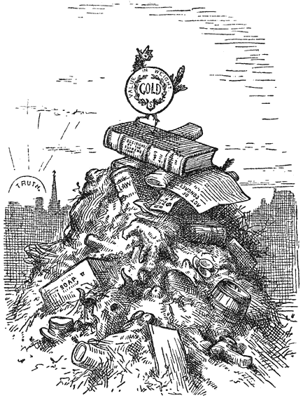 But the thing which the philosophers relied on more than any thing else to sustain their views before the people was a judicial decision recently made in a neighboring country, by its highest court, before whom the question as to what constituted money was officially brought for determination. This decision, expressed in the very peculiar language of the country, was as follows: “What we do assert is, that Congress has power to enact that the Government promises to pay money shall be, for the time being, equivalent in value to the representative of value determined by the coinage acts, or to multiples thereof.” All of which, translated into the language of the island, meant that Government has the power to make a promise to pay, containing an acknowledgment in itself that the promise has not been paid, a full satisfaction that the promise has been paid. That this decision, furthermore, covered no new points of law, was indirectly conceded by the learned judges, inasmuch as, in giving their opinions, they cited, as precedents worthy of being ever remembered, the decisions [89]of that eminent old-time jurist, Cade (Jack), who ordained that “seven half-penny loaves should be sold for a penny;” and that “the three-hooped pot shall have ten hoops.” The same court also strengthened its position by saying that “it is hardly correct to speak of a standard of value. The Constitution does not speak of it. Value is an ideal thing. The coinage acts fix its unit as a dollar; but the gold and silver thing we call a dollar is in no sense the standard of a dollar. It is a representative of it. There might never have been a piece of money of the denomination of a dollar.”4