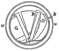 Mira quædam et a nemine, quod sciam observata proprietas elucescit in duobus speculis ita constructis, ut ad instar libri claudi et aperiri possint; ponantur illa in plano quopiam, in quo semicirculum in gradus suos descriptum habeas. Si enim punctum, in quo specula committuntur, in centro semicirculi statuas, ita ut utrumque speculi latus diametro insistat, semel tantam videbitur rei imago, apparebuntque duæ res, una extra speculum vera, altera intra, phantastica: Si vero specula ita [Pg 169] posueris, ut divaricatio laterum 120 gradus intercipiat, videbis rei intra latera est, quia angulus reflexionis et incidentiæ tantus est, quantus est angulus interceptus a lateribus, videlicet 120 grad. qui cum obtusius sit, non nisi binam imaginem causare potest, ut in Propos. v. fol. 848, ostensum est. Si vero specula interceperint angulum 90 graduum, videbis in plano circulum in quatuor partes divisum, in quibus totidem simulacra rei positæ comparabunt, tria phantastica, et unum verum; cum enim reflectio fiat ad angulos rectos utrumque latus reflectens formam causabit intra se alias duas formas, unde et consequentur pro multiplicatione laterum formæ multiplicabuntur, quæ et in reflectione laterum normam servabunt uti in Propos. v. fol. 848, ostendimus. Porro si speculorum latera interceperint angulum 72 graduum, videbis in plano horizontali efformari perfectum et regulare pentagonum, in quo totidem formæ apparebunt, item, si sexaginta graduum interceperint angulum, videbis hexagonum totidemque formas quinque nimirum phantasticas unam veram. Ita, si speculorum angulus interceperit 51 gradus cum ³/₇ comparebit perfectum heptagonum, cum totidem rei intra specula collocatæ formis; non secus angulus speculorum 45 graduum dabit octogonum; 40 graduum dabit enneagonum; 36 graduum decagonum; 32 graduum angulus cum ⁸/₁₁ dabit endecagonum et denique angulus 30 graduum referet dodecagonum cum totidem formis, et sic in infinitum; ita ut semper tot laterum sit futurum polygonum anacampticum totidemque formarum, quot polygonum cuivis latus speculorum intercipit divaricatio, latera habuerit: quorum omnium rationes dependent a Propos. v. precedentis distinctionis. —Kircheri, Ars Magna Lucis et Umbræ. Rom. 1646, p. 890.