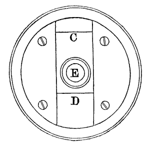 3. That out of an infinite number of positions for the eye, there was [Pg 5] only one where the symmetry was perfect, namely, as near as possible to the angular point, so that the circular field could be distinctly seen; and that this point was the only one out of an infinite number at which the uniformity of the light of the circular field was a maximum, and from which the direct and the reflected images had the same form and the same magnitude, in consequence of being placed at the same distance from the eye. This, also, was the position in which the eye was necessarily placed when looking through the fluid with which the glass trough was partially filled.