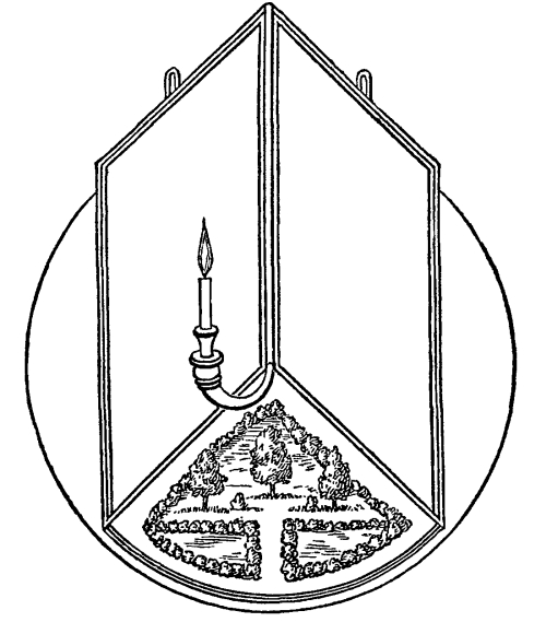 In Kircher’s mirrors the eye was placed in front of them. The object therefore was much nearer the eye than the images, and the light of the different reflected images was not only extremely unequal, but the difference in their angular magnitude was such that they could not [Pg 172] possibly be united into a symmetrical whole. From the accidental circumstance of his using lines upon paper as an object, the distortion of the pictures arising from the erroneous position of the eye was prevented; but if the same combination of mirrors were applied to the object-plates of the Kaleidoscope, it would be found utterly incapable of producing any of the fine forms which are peculiar to that instrument.