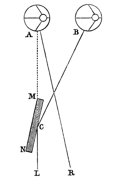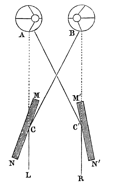 [24] “Le fait est,” says the Abbé Moigno, “que le stéréoscope par réflexion était presque complètement oublié, lorsque Sir David Brewster construisit son stéréoscope par refraction que nous allons décrire.”—Cosmos, vol. i. p. 4, 1852.