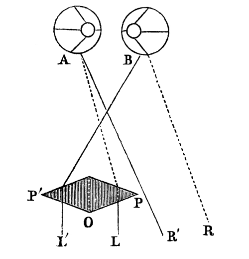 In examining Dr. Berkeley’s celebrated Theory of Vision, I saw the vast importance of establishing the law of visible direction, and of proving by the aid of binocular phenomena, and in opposition to the opinion of the most distinguished metaphysicians, that we actually see a third dimension in space, I therefore submitted to the Royal Society of Edinburgh, in January 1843, a paper On the law of visible position in single and binocular vision, and on the representation of solid figures by the union of dissimilar plane pictures on the retina. More than twelve years have now elapsed since this paper was read, and neither Mr. Wheatstone nor Dr. Whewell have made any attempt to defend the views which it refutes.