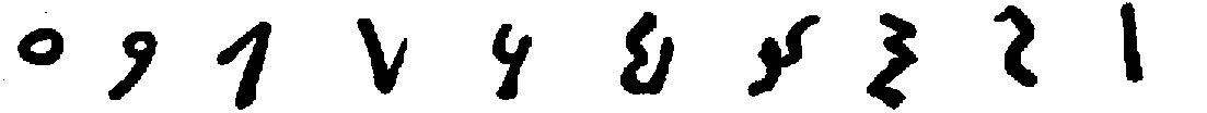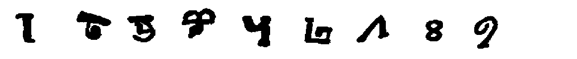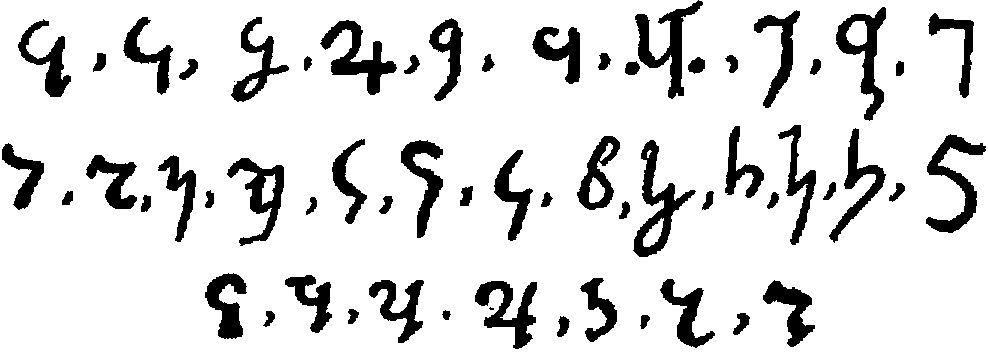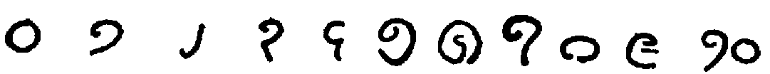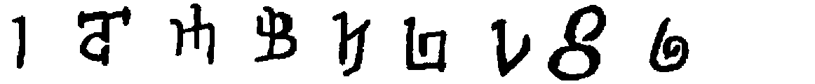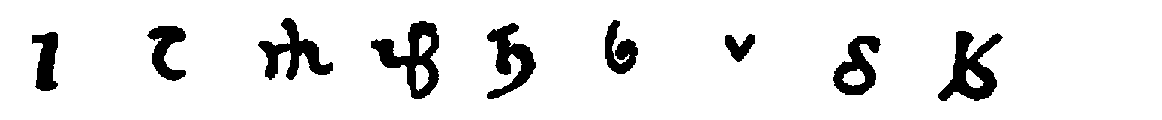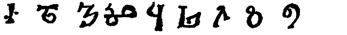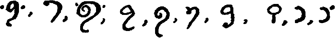 [598] The first is from the Hannover algorismus, thirteenth century. The second is taken from the Rollandus manuscript, 1424. The others in the first two lines are from Cappelli, twelfth (3), fourteenth (6), fifteenth (13) centuries, respectively. The third line is from Chassant, loc. cit., p. 113, no mention of dates.