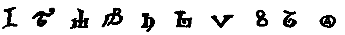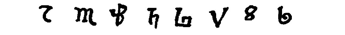 [590] The first is from an algorismus of the thirteenth century, in the Hannover Library. [See Gerhardt, "Ueber die Entstehung und Ausbreitung des dekadischen Zahlensystems," loc. cit., p. 28.] The second character is from a French algorismus, c. 1275. [Boncompagni Bulletino, Vol. XV, p. 51.] The third and the following sixteen characters are given by Cappelli, loc. cit., and are from manuscripts of the twelfth (1), thirteenth (2), fourteenth (7), fifteenth (3), sixteenth (1), seventeenth (2), and eighteenth (1) centuries, respectively.