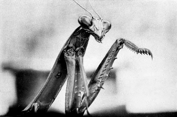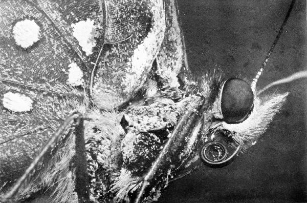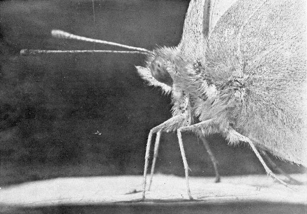 If you compare these photographs with those to be found in most books on insects, you will find that they differ in several particulars. They are all either front views or side views of the creatures, whereas those in books on entomology are generally views from above. Imagine a book on the horse in which only top views were shown, or a guide to a zoölogical garden illustrated with the various wild beasts photographed from above. It is true that, being an much larger, we generally look down at these monsters, but a mouse also generally runs along the floor or under our feet and yet a zoölogist pictures it from the same point of view that he does an elephant. Crows look down upon us, yet I imagine that no one will admit that the crow’s impression of human beings is as correct or as interesting as that which we have of ourselves. Every creature has a right to be portrayed from its own level, and the reason these photographs are unusual is because they carry out this principle and do each creature justice.