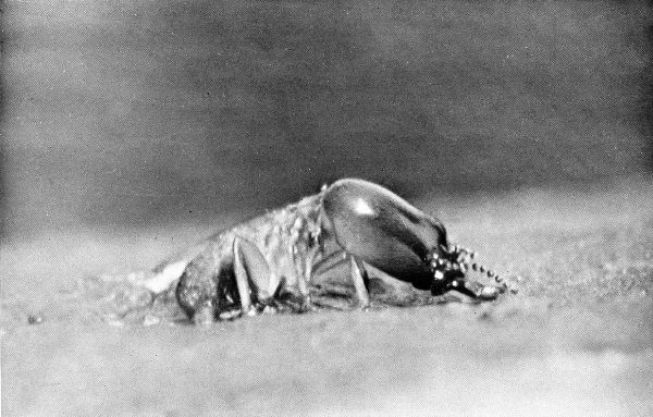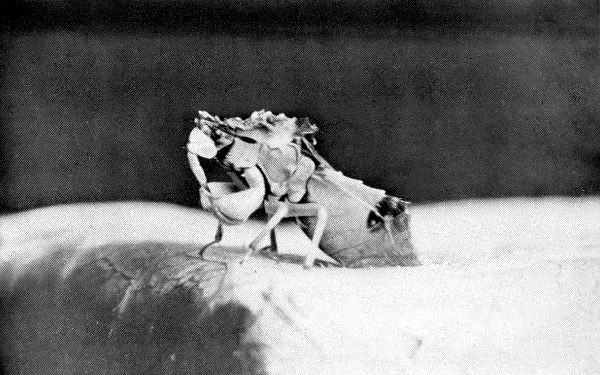 It has been a source of keen satisfaction to find, upon showing the results to professional entomologists, that many of them did not realize that the insects were not alive when photographed. But, although they were not alive, they had just recently been put to sleep with ether, for we soon discovered that to get a lifelike photograph one must photograph a monster at once, within half an hour after death, the sooner the better.