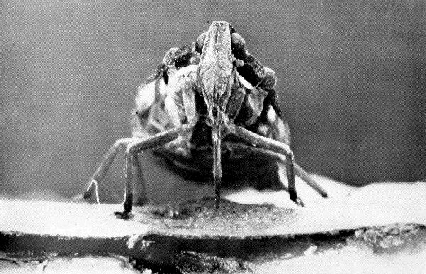 Man struggles against these tiny monsters not only for his life and health but for his food as well. Almost every cultivated plant has its enemy, and some of them have many. The bugs alone which stick their beaks into all sorts of plants to suck their juices would starve man out in one or two brief seasons if they in turn were not held in check by enemies of their own. The chinch bug alone has demonstrated his power to devastate the wheat fields. The bark beetles that girdle square miles of forest trees, the moths that destroy their foliage, the creatures that burrow into the fruit and fruit trees, the gall-forming flies that form galls on the roots of the grape vines able to destroy the revenues of a whole country, the beetle which strips the potato of its leaves, the one which infects with its dirty jaws the melon vines of the South and turns the melon patches brown—these are a few of the vast array of our enemies. It would require a book much larger than this one just to enumerate those well known.