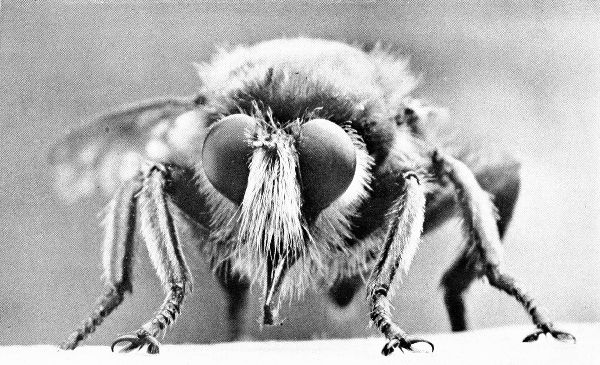 The pioneer in this field of photography is Dr. N. A. Cobb, for it is he who first showed what the face of a fly looks like. His suggestions are what first encouraged me to take up the work, although the method finally used by me is quite different from that which he employed. I substituted the long horizontal camera and the long focus lens for his vertical bellows and short focus lens, believing that for larger creatures I get a greater depth of focus and more lifelike appearance.