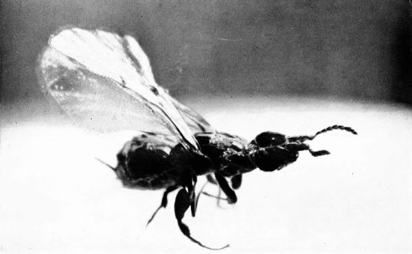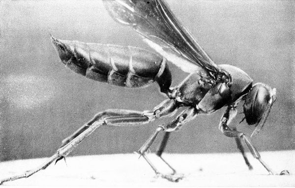 Also, they are our friends if, like the spiders, they kill such monsters as suck our blood or make our lives unsafe, or, like the great hordes of wasps and hornets, wage unending warfare against the flies but which, because they attack us personally if we come too near their nests, we kill on sight. Strangely enough, it is often these same stinging insects which help us by fertilizing the blossoms of our fruit trees. Indeed many plants are so dependent on these little creatures that they have lost the power of self-fertilizing and thousands of species of trees and plants would become extinct in a generation without their friendly aid.