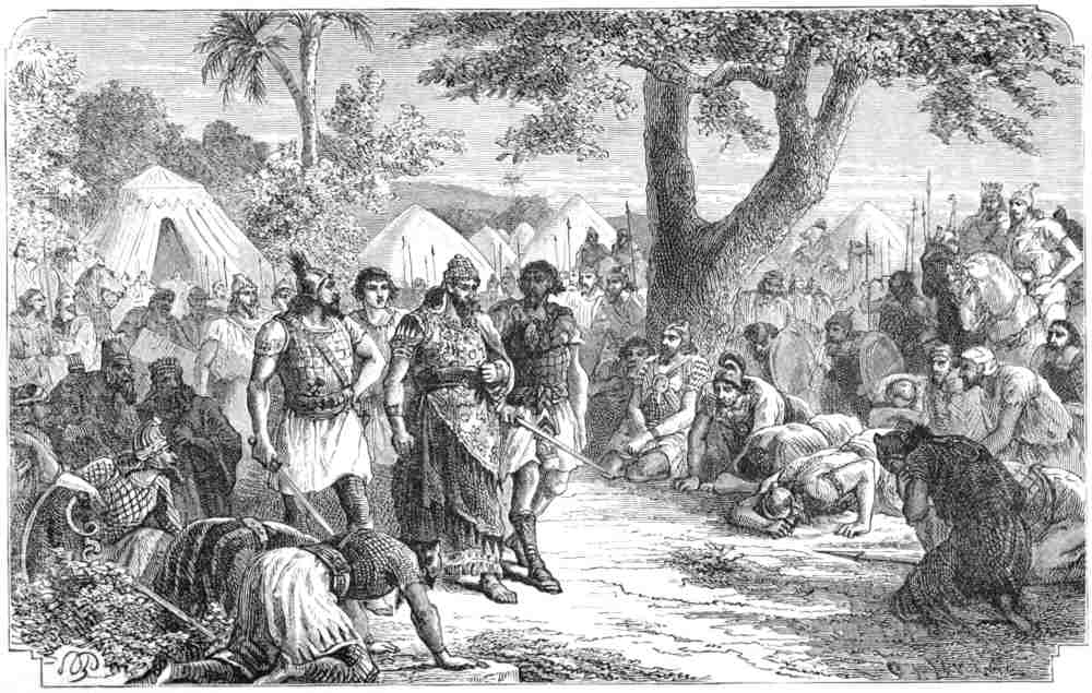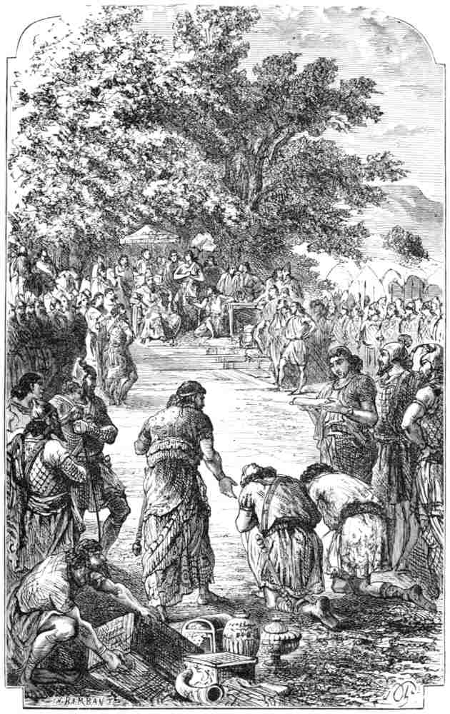 "Now! where are they now?" shrieked out the excited man; "they are every one upon their way to some cursed city of the Chaldeans, on the other side of Rehoboth. Instead of shekels I have got plenty of kicks and plenty of bruises, of which I shall carry the marks on my body for a long time to come. The naval suffect gave me a few zeraas,[14] just to relieve my distress, and had it not been for that, I should not have had a morsel of bread to keep life in me. It is now three days since I arrived in Tyre, and to get here I have been continually walking, till my feet are so swollen I can hardly move."