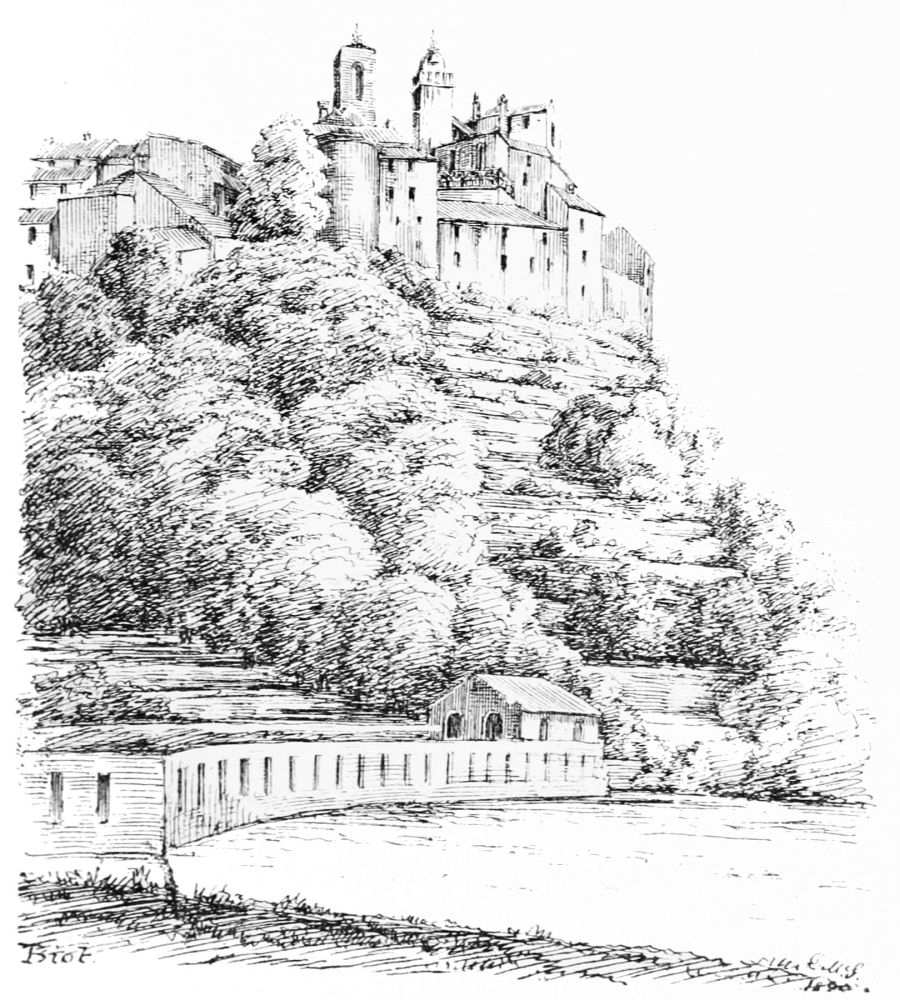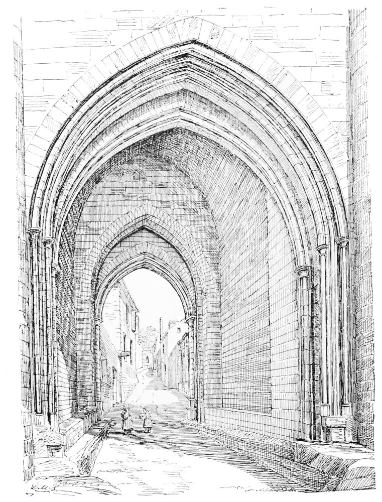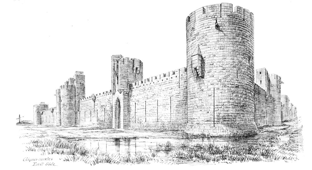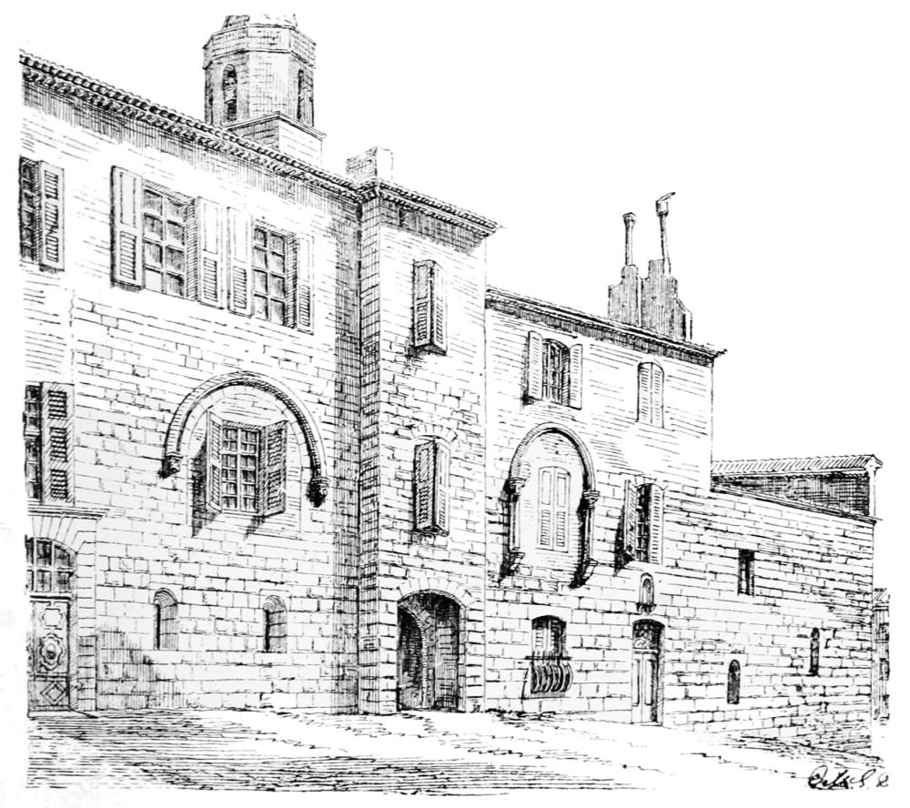 At Avignon the change of aspect is even more complete. “On arriving at Avignon,” says Prosper Mérimée, “it appeared to me that I had left France behind. Landing from the steamboat I had not been prepared by a gradual transition for the novelty of the spectacle which presented itself; the language, the costumes, the aspect of the{4} country, everything appears strange to one coming from the centre of France. I believed myself in the middle of a Spanish town. The crenellated walls, the towers furnished with machicolations, the country covered with olives and plants of a tropical vegetation, recalled Valencia, &c.”