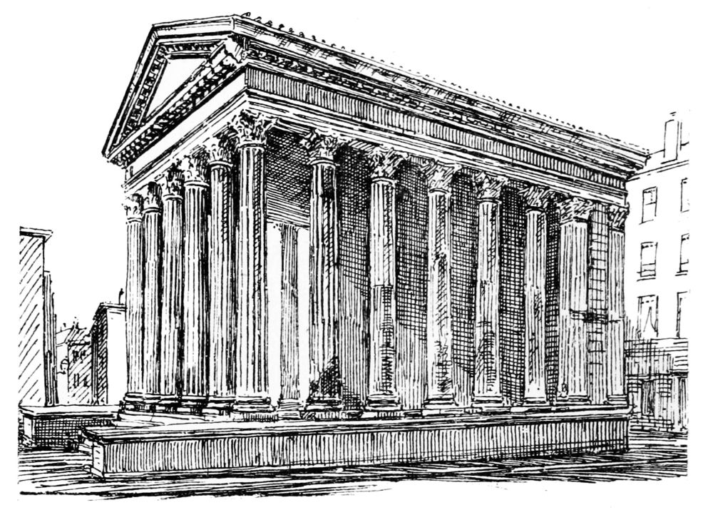 Under Rome the towns of Gaul were adorned with the profusion of splendid public buildings universal throughout the Empire, every town being provided with its Forum and Temples, its Theatre, Amphitheatre, Baths, Aqueducts and Triumphal Arches. The style of architecture adopted was naturally that of the Romans, but in many buildings and sculptures of the early centuries, a strong Greek feeling may be detected. This is also the case at Pompeii, in Southern Italy, which was likewise originally a Greek colony.