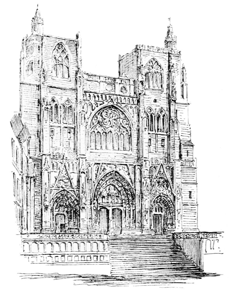 All these circumstances have contributed to make the great cathedrals of Amiens, Beauvais, Rouen, Rheims, and Chartres familiar and attractive; while the picturesque towns of Northern France, with their quaint half-timbered houses, and the no less picturesque costumes of the inhabitants,{2} are constantly brought before us in the charming representations of our artists.