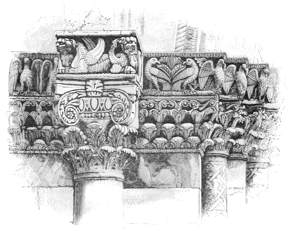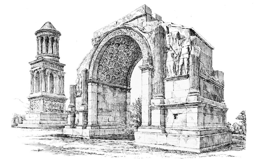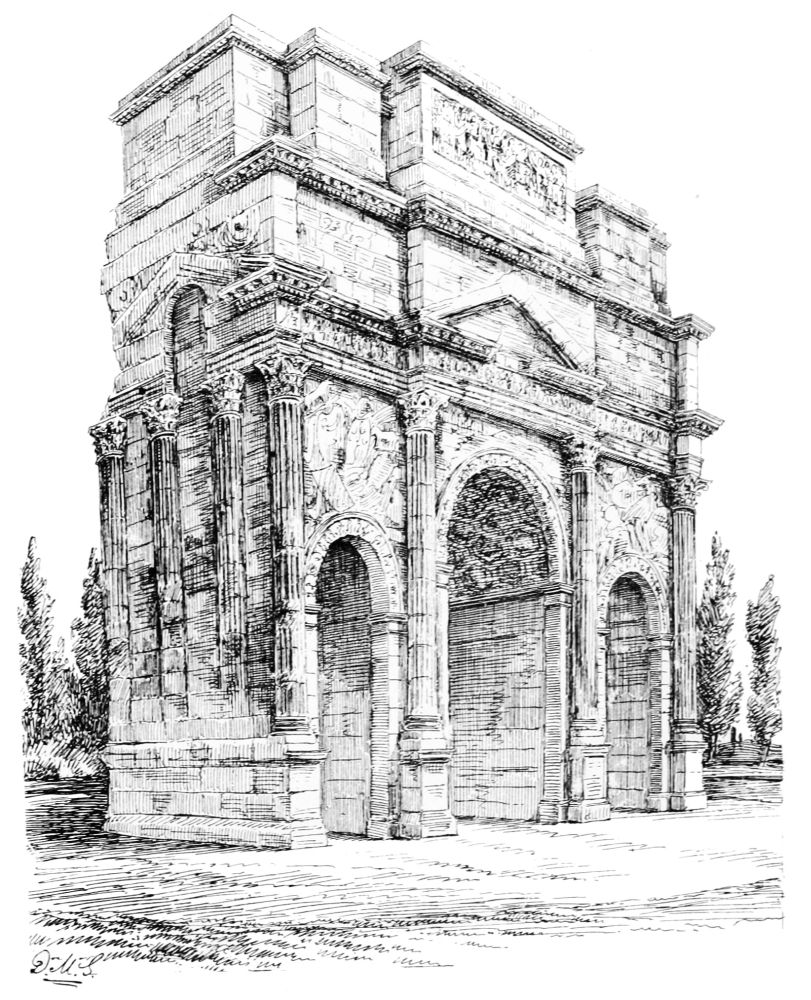 The Architecture of Provence naturally divided into a Classic and a Mediæval period—which best considered separately, 32; the {x}Roman period, 33; Paris, Autun, capricious preservation of Classic monuments, 34; Lyons, Vienne, 35; Temple of Augustus and Livia, remains of Forum, 37; the pyramid, 38; Vienne restored, 39; Orange, 40; the theatre, 42; triumphal arch, 45; other triumphal arches at Cavaillon, 47; St Remy, 48; mausoleum at St Remy, 50; Arles, history, 51; amphitheatre, 52; mode of protecting spectators in ditto, 54; obelisk, Place d’Hommes, Tour de la Trouille, 56; Alyscamps, 57; sculpture in museum, 59; Nimes, history, 64; amphitheatre, 65; Maison Carrée, 68; statue of Venus, 71; Nymphæum, 72; Tour Magne, 73; Roman gates, 74; Pont du Gard, 76; the “Camargue” and the “Crau,” 77; St Chamas, Roman bridge at, 77; Vernégue, temple at, 78; paucity of classic remains at Marseilles and Narbonne, 79; Pomponiana, 80; Le Luc, 80; Fréjus, history, 80; gate of Gaul, amphitheatre, theatre, aqueduct, 82; Via Aurelia, 83; aqueduct of Clausonne, Antibes, Vence, 84; Cemenelum, 86; Turbia, 87.