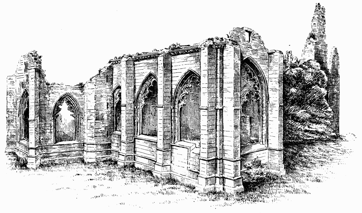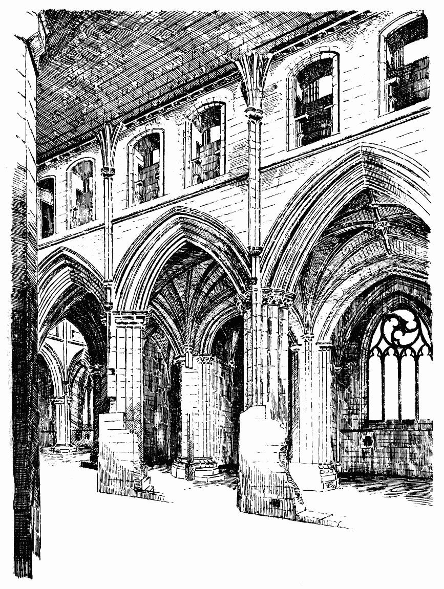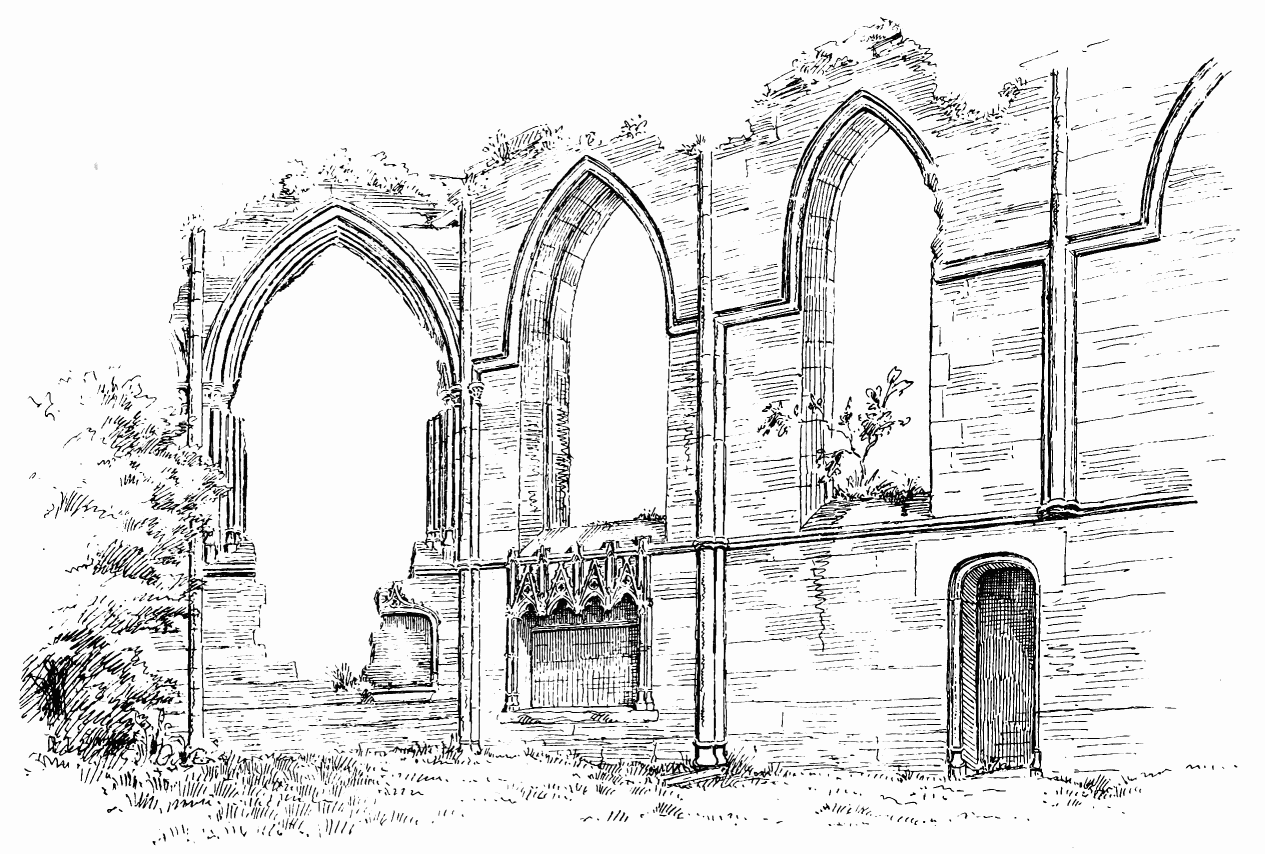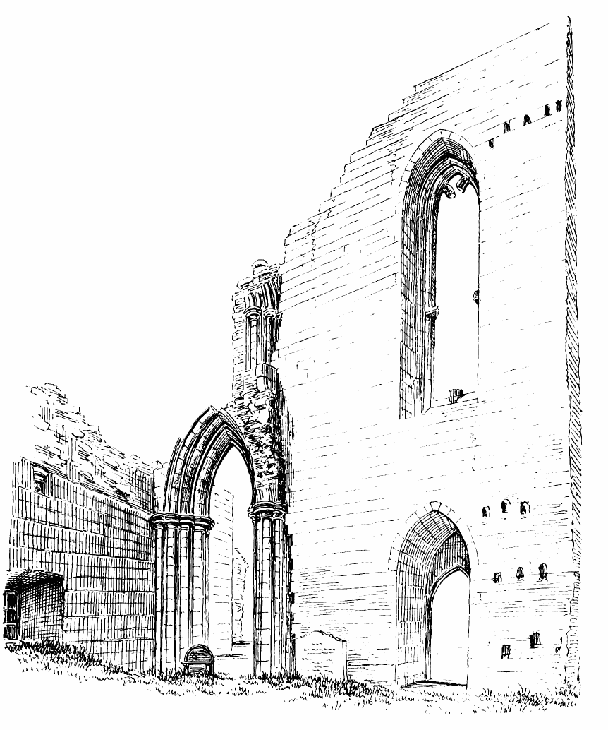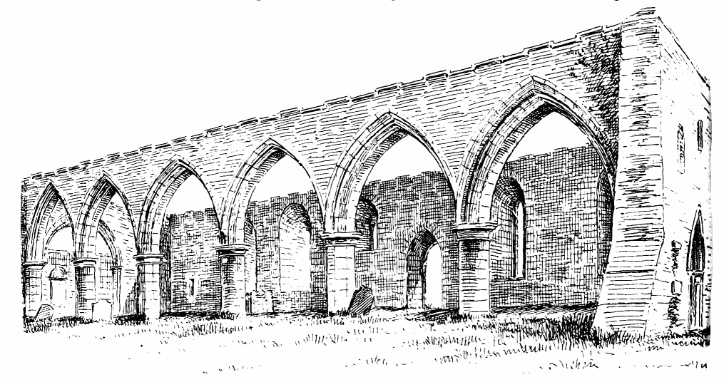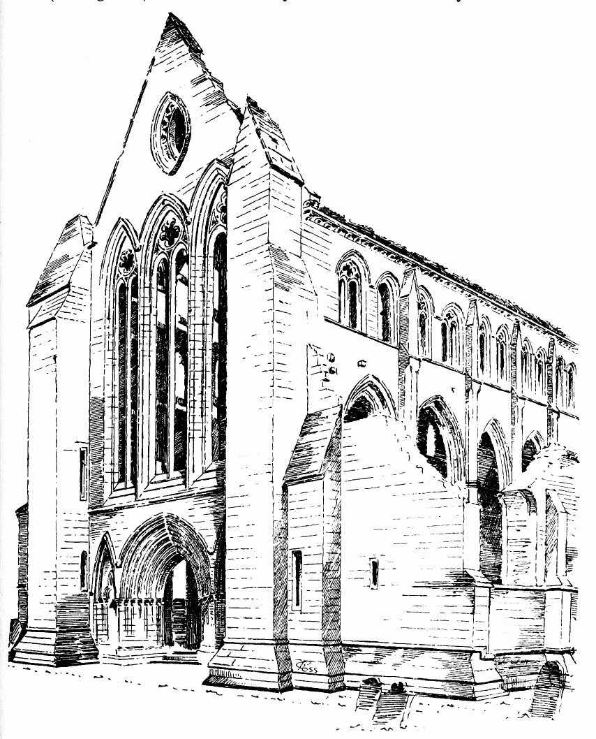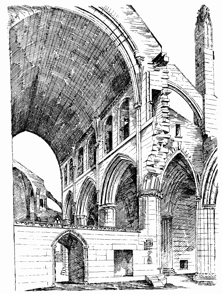 2. That the nave was, to a large extent, rebuilt and roofed by Prior James Bisset, about the beginning of the fifteenth century, but remained an “empty synagogue” till completed and furnished with glazed windows, altars, and decorations by his successor, Prior Halderston.