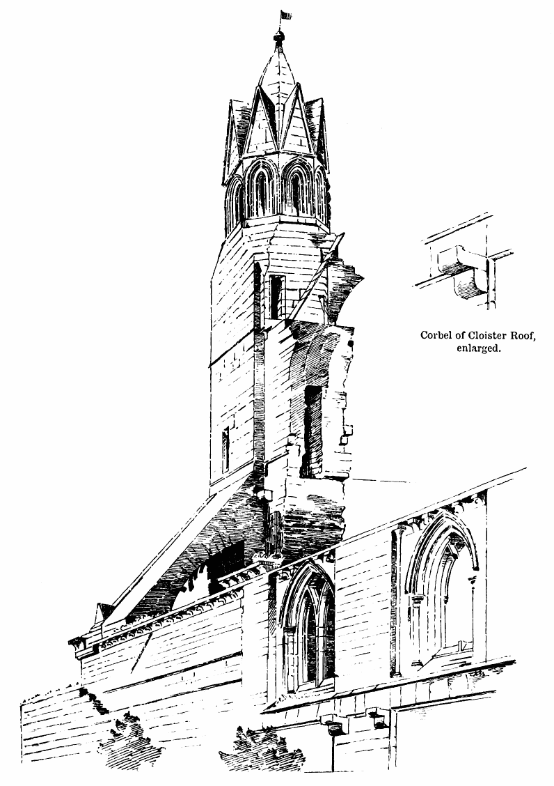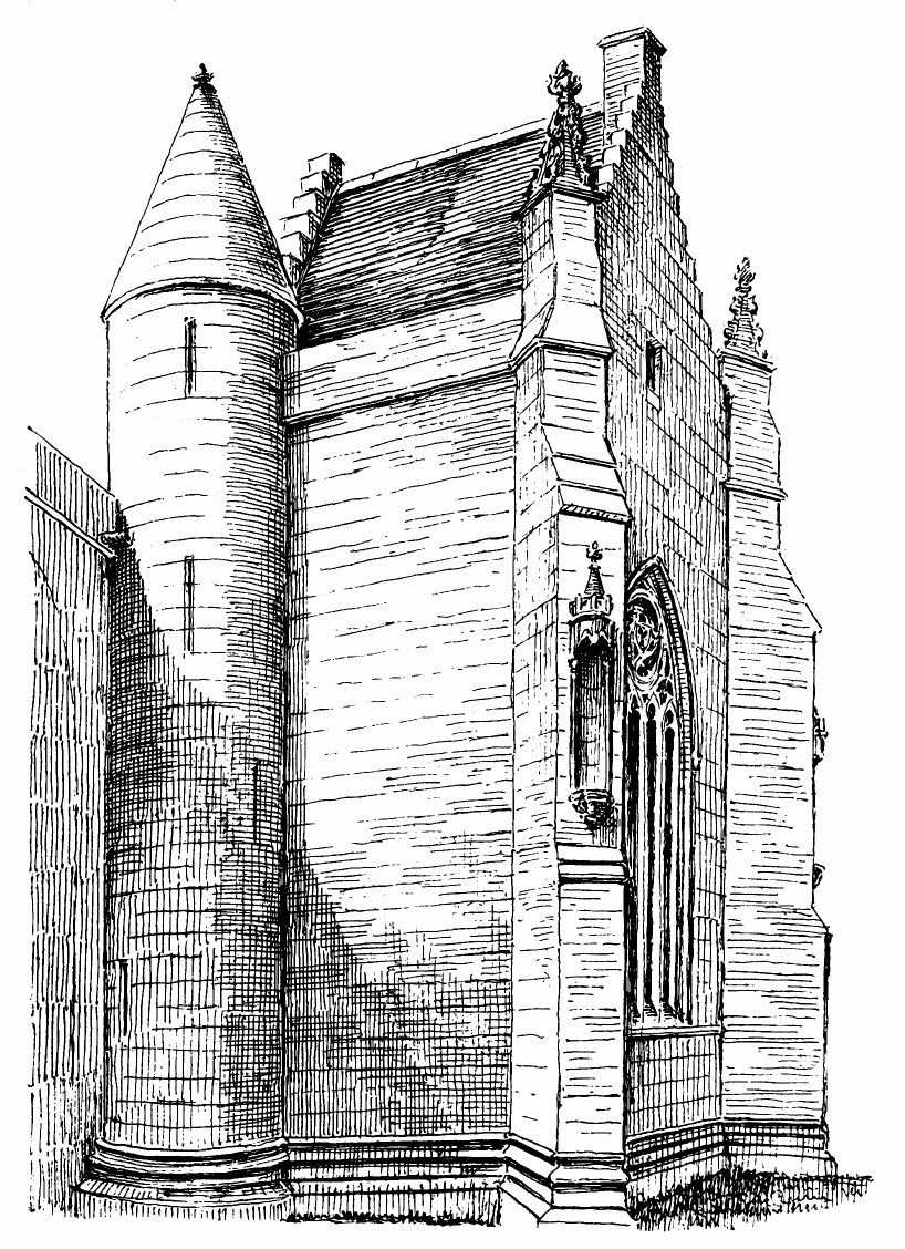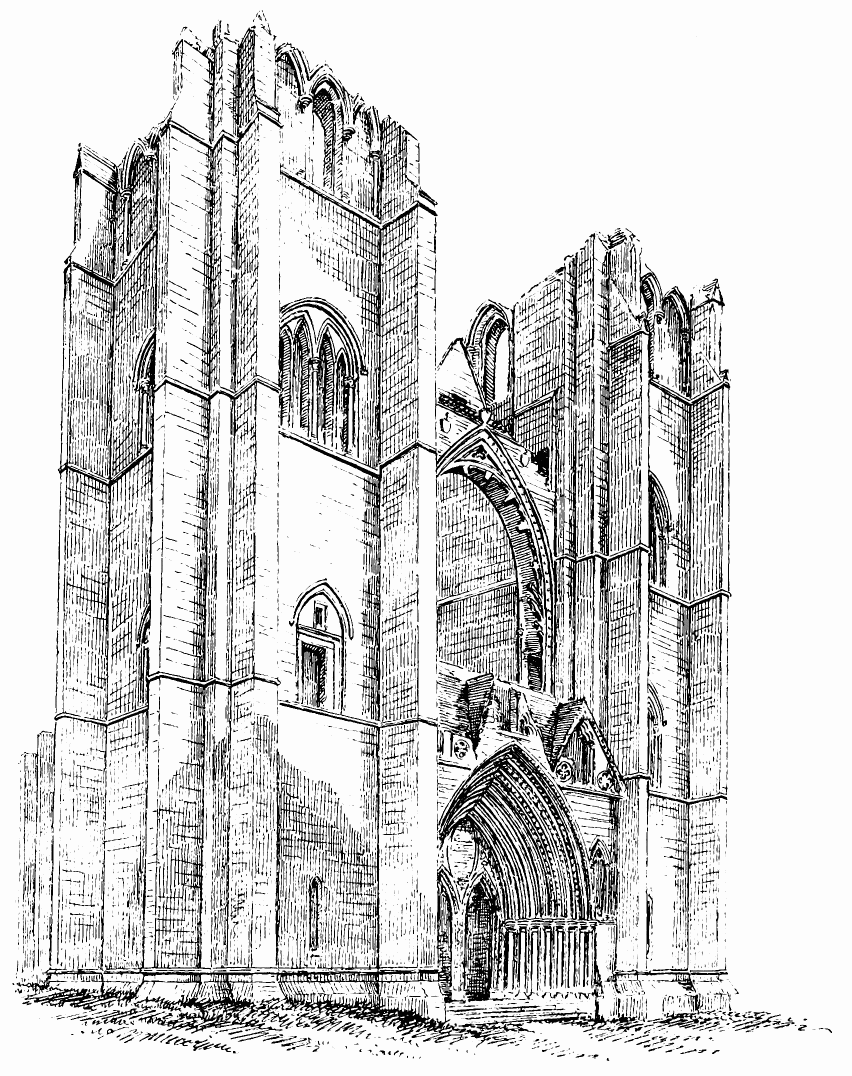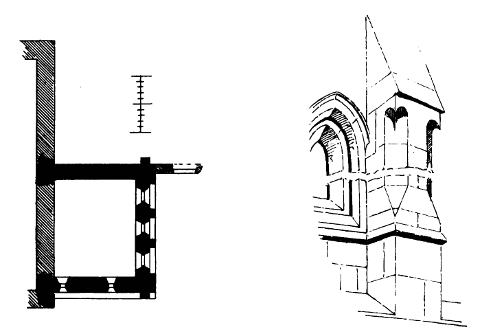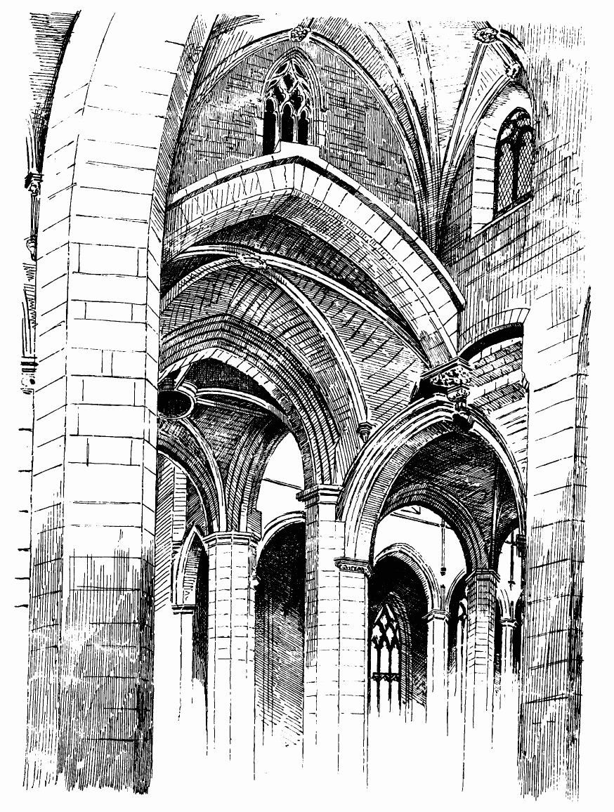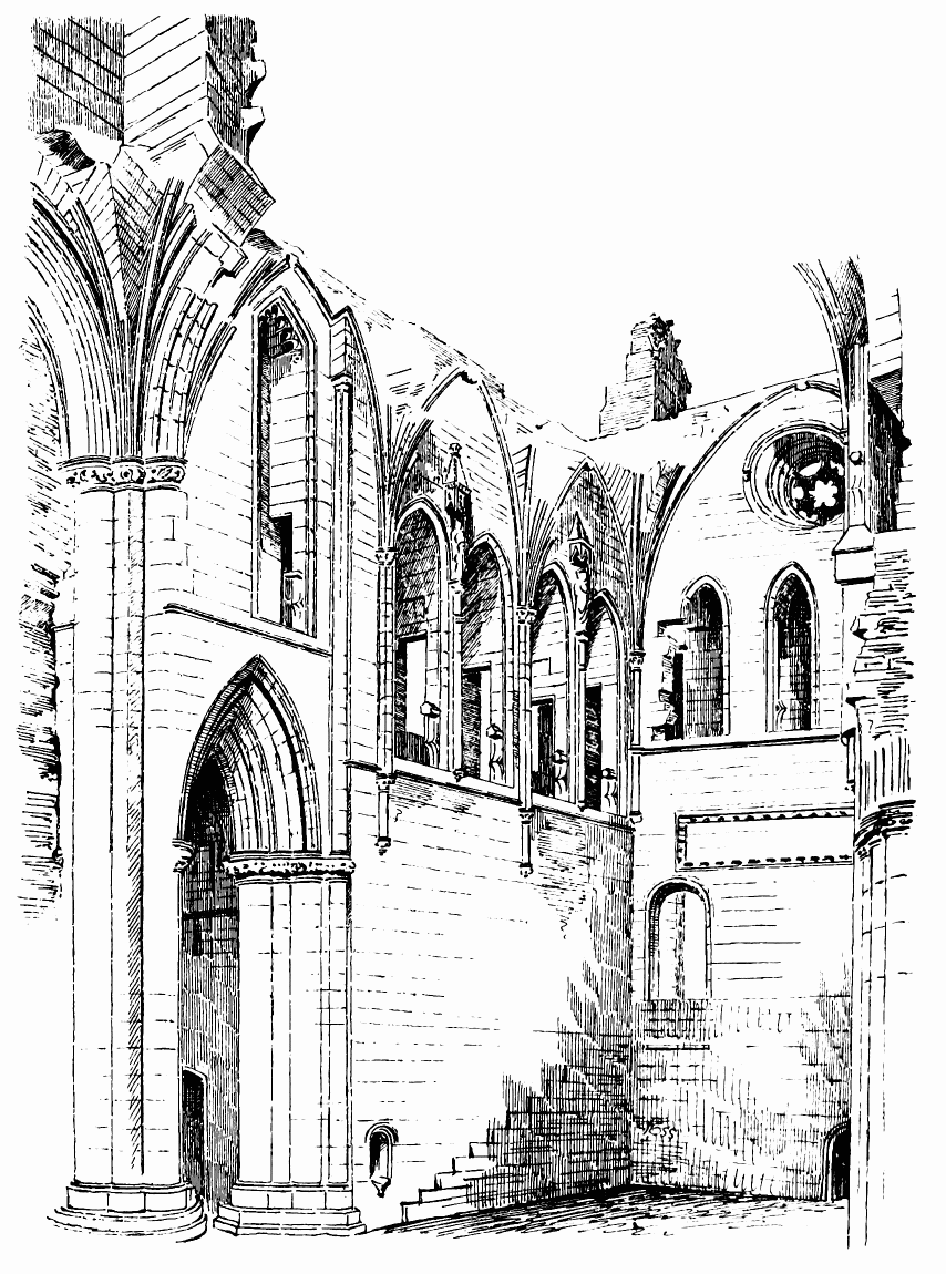 Externally, as well as internally, our Scottish Gothic is somewhat defective in its mode of carrying out the arcuated principles. The wooden roofs so frequently employed really require no buttresses, and, therefore, our buildings are in so far right where in such cases only very slight pilaster-buttresses are used in the triforium, as is the case in Glasgow, Elgin, and Dunblane Cathedrals. In the side aisles, which are vaulted, the buttresses are sometimes heavier, but these features are insignificant as compared with the great flying buttresses and piers of the genuine arcuated or Gothic style of Northern France.