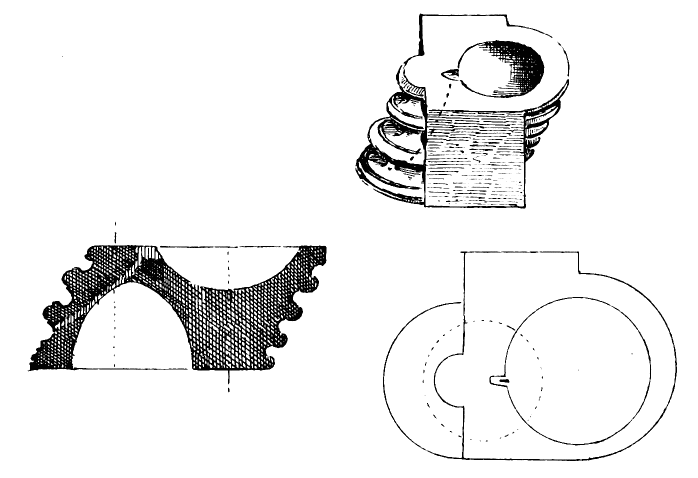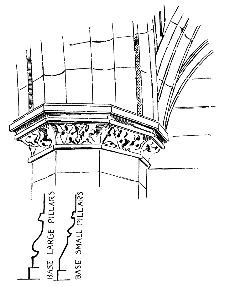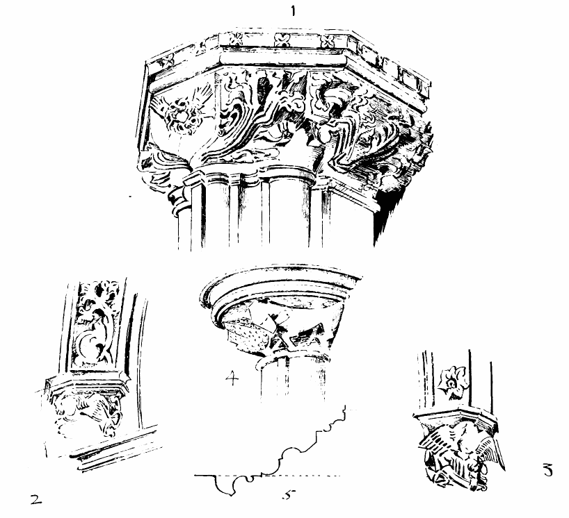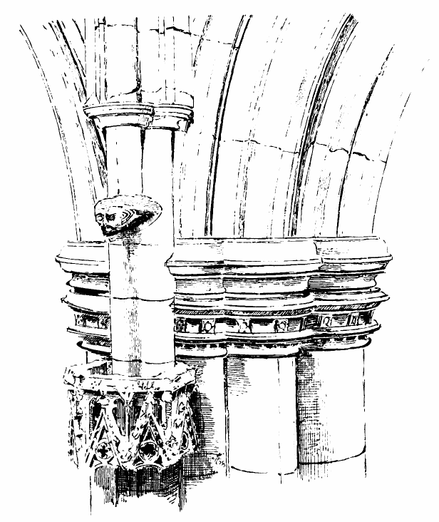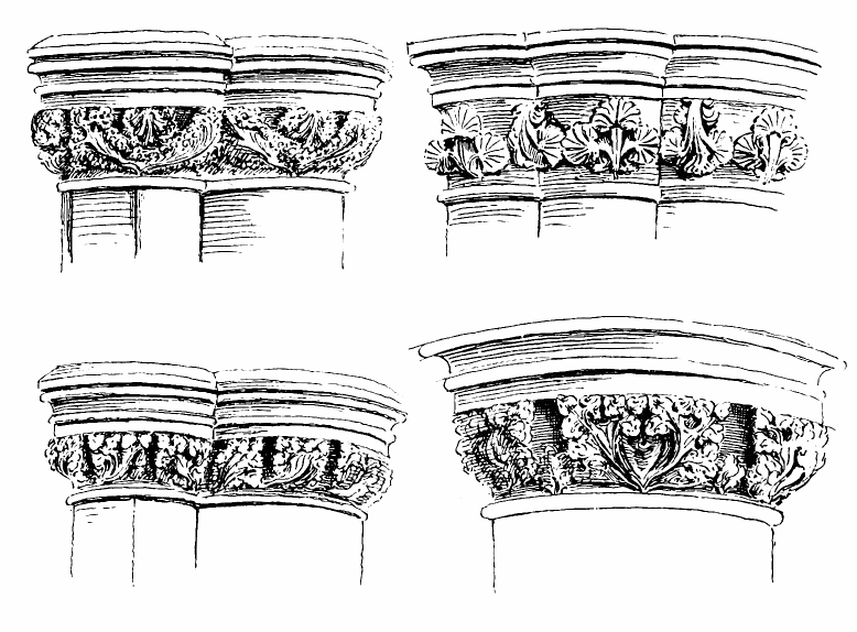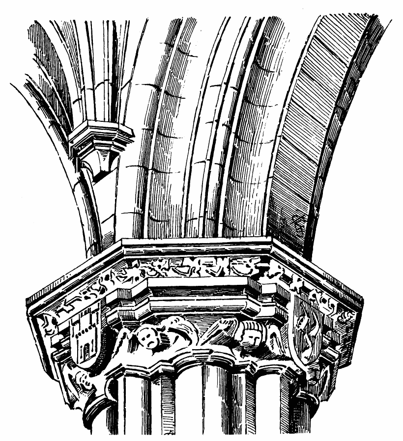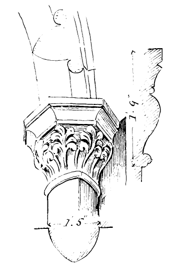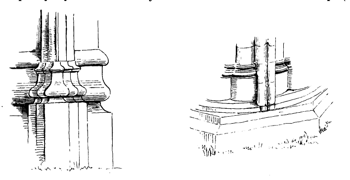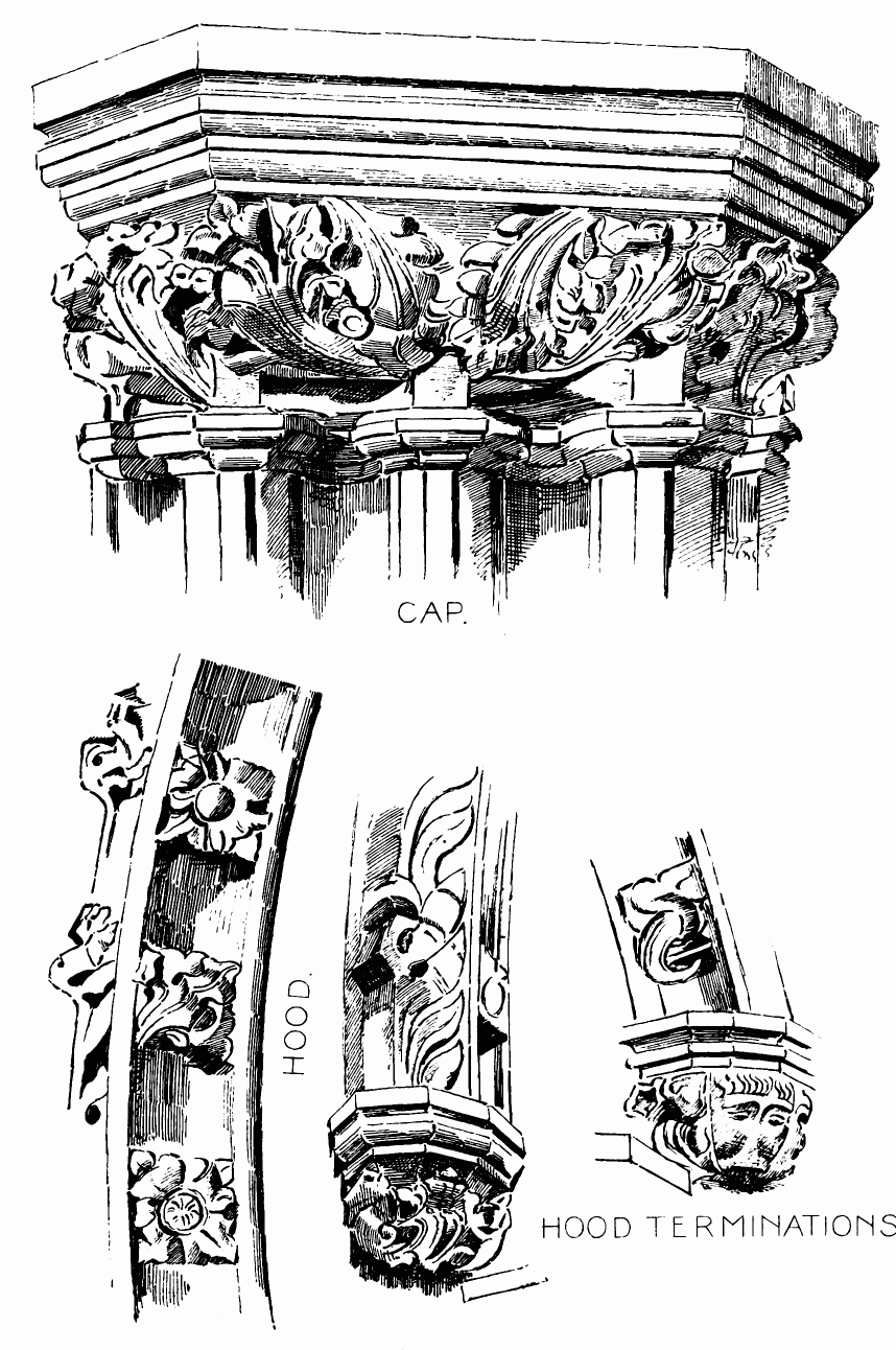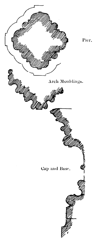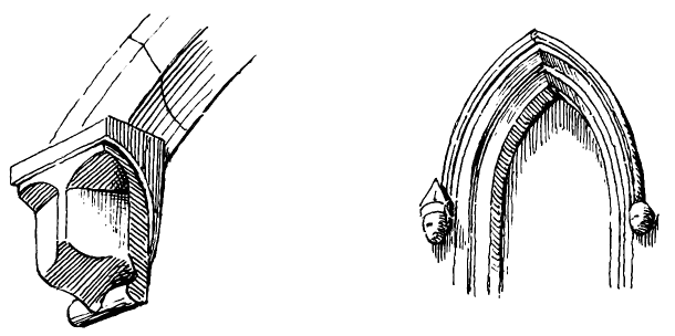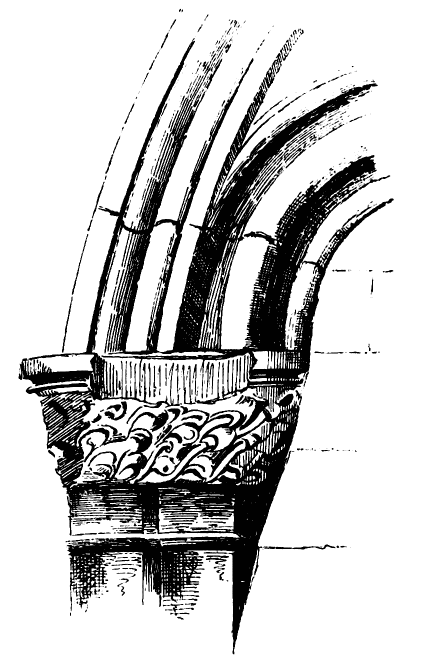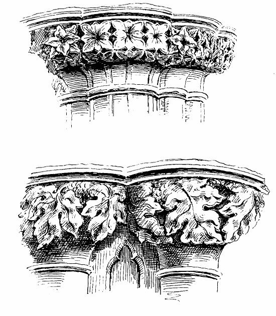 Moulded caps, with round abaci, are usual here, as in England, and have the same defects, both in principle and practice. In the later examples the relation between the shafts or mouldings, which carry the caps, and the arch-mouldings above them is abandoned, and that genuine Gothic principle is entirely ignored.