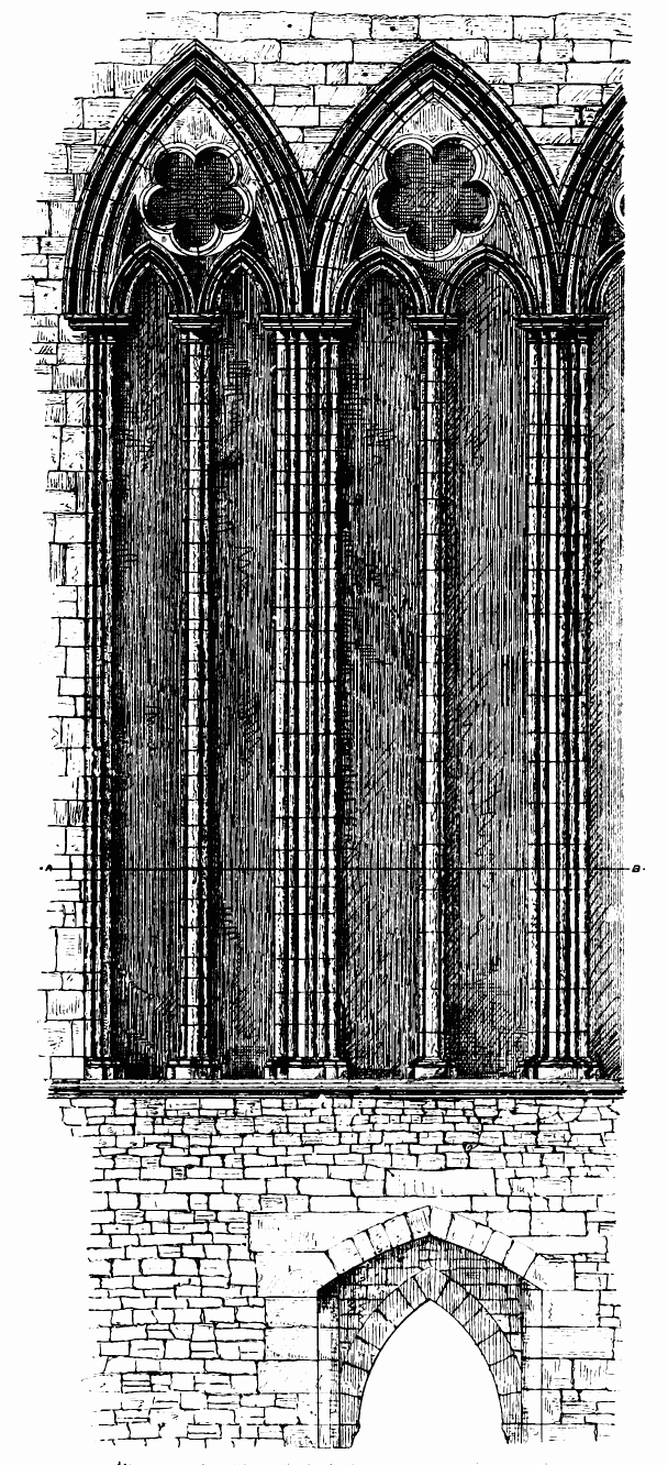 The actuating motive of Gothic design in the main feature of the vaulting being thus lost sight of in England, it is not surprising to find it inactive in other directions. The Romanesque element of massive walls, with small windows, is likewise partially adhered to, and in details also the guiding principle of French design is in some respects abandoned. The round form of the abacus—so universally employed in England—may be cited as a characteristic example of departure from the Gothic principle.