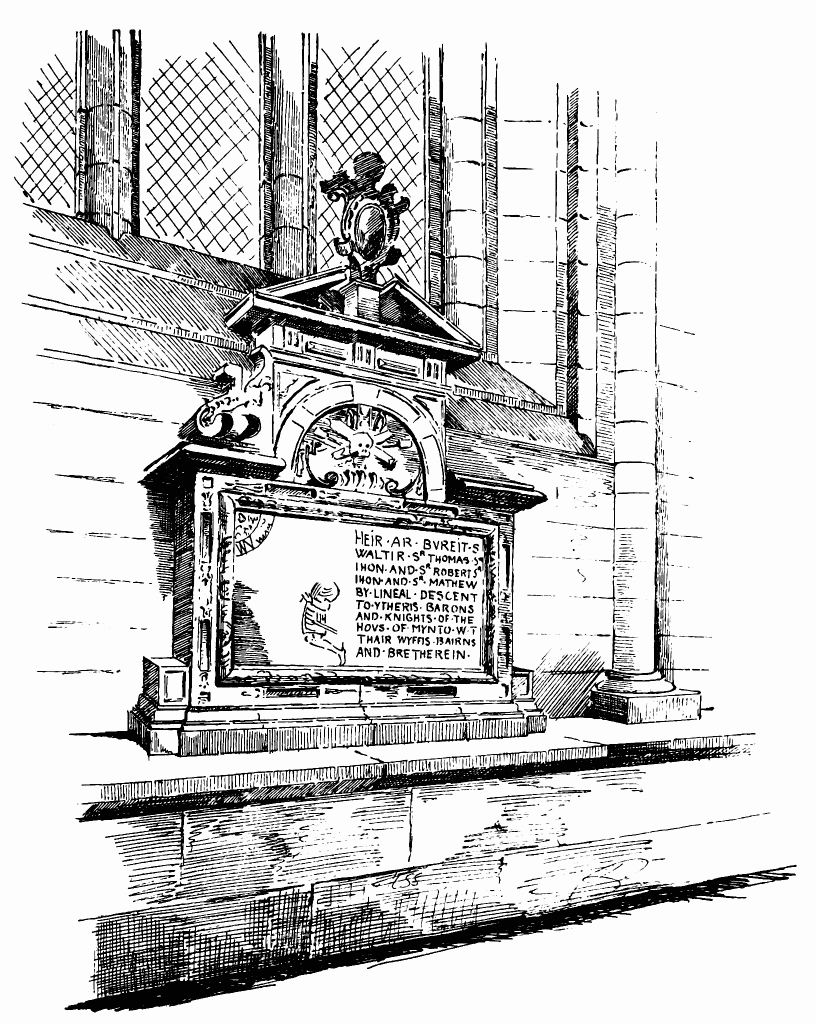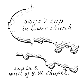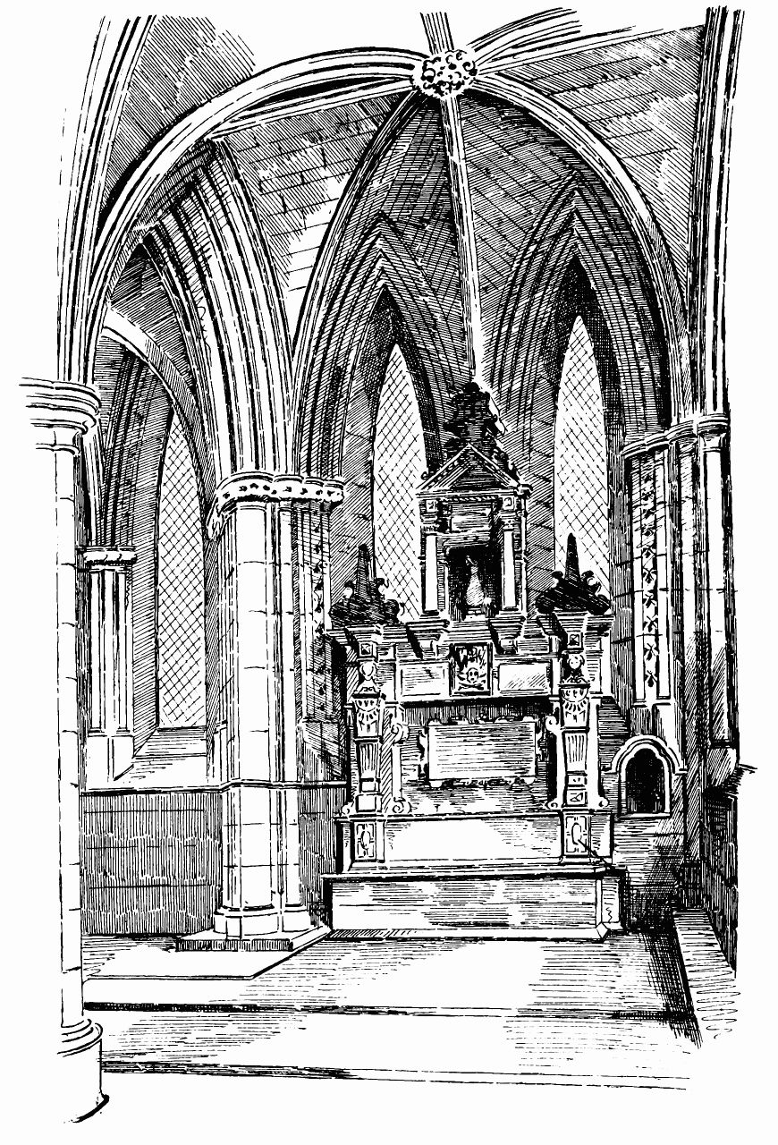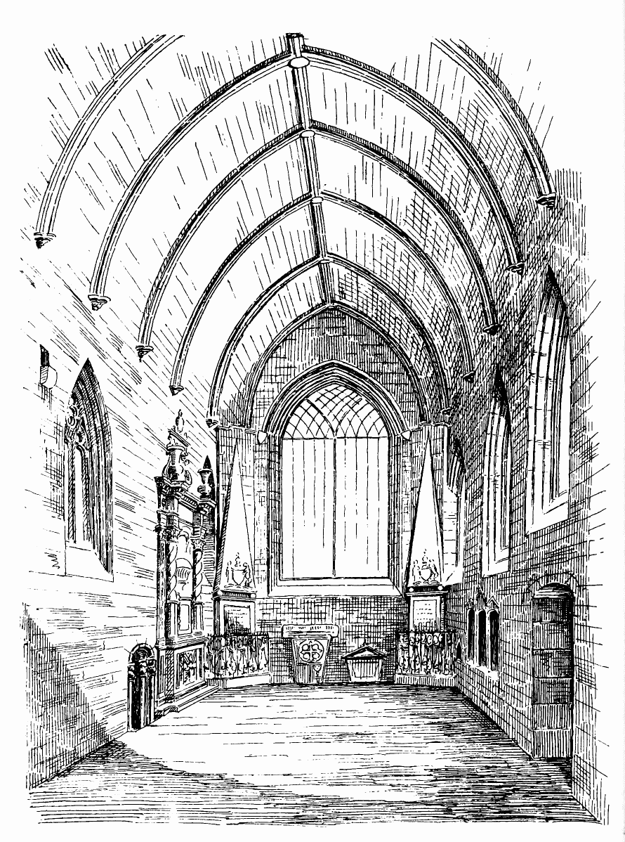 In connection with above, Lord Bute mentions that Bower (p. 366) states that Bishop Henry Wardlaw, who{xv} died April 6th, 1440, “was buried in the Church of St. Andrew, with greater pomp than his predecessors, in the wall between the choir and the Chapel of our Lady,” thus making it evident that the Chapel of our Lady was the chapel on the north side of the choir.