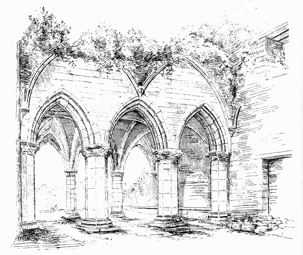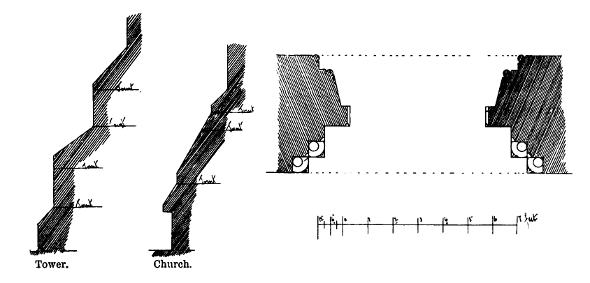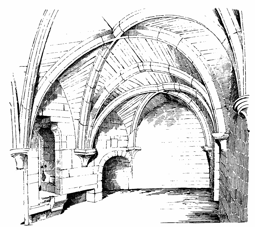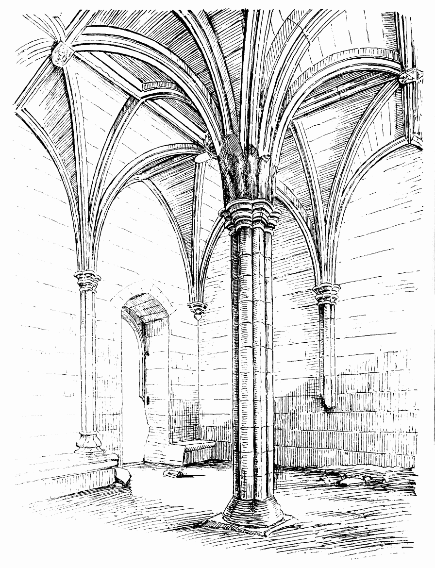 In Lincluden College the vaulting shafts, which are heavier than usual, all rest on corbels in the side walls, not far above the floor, so that none of their loads are conveyed to the foundation.