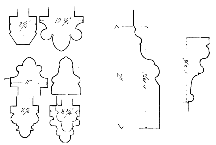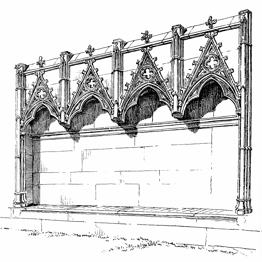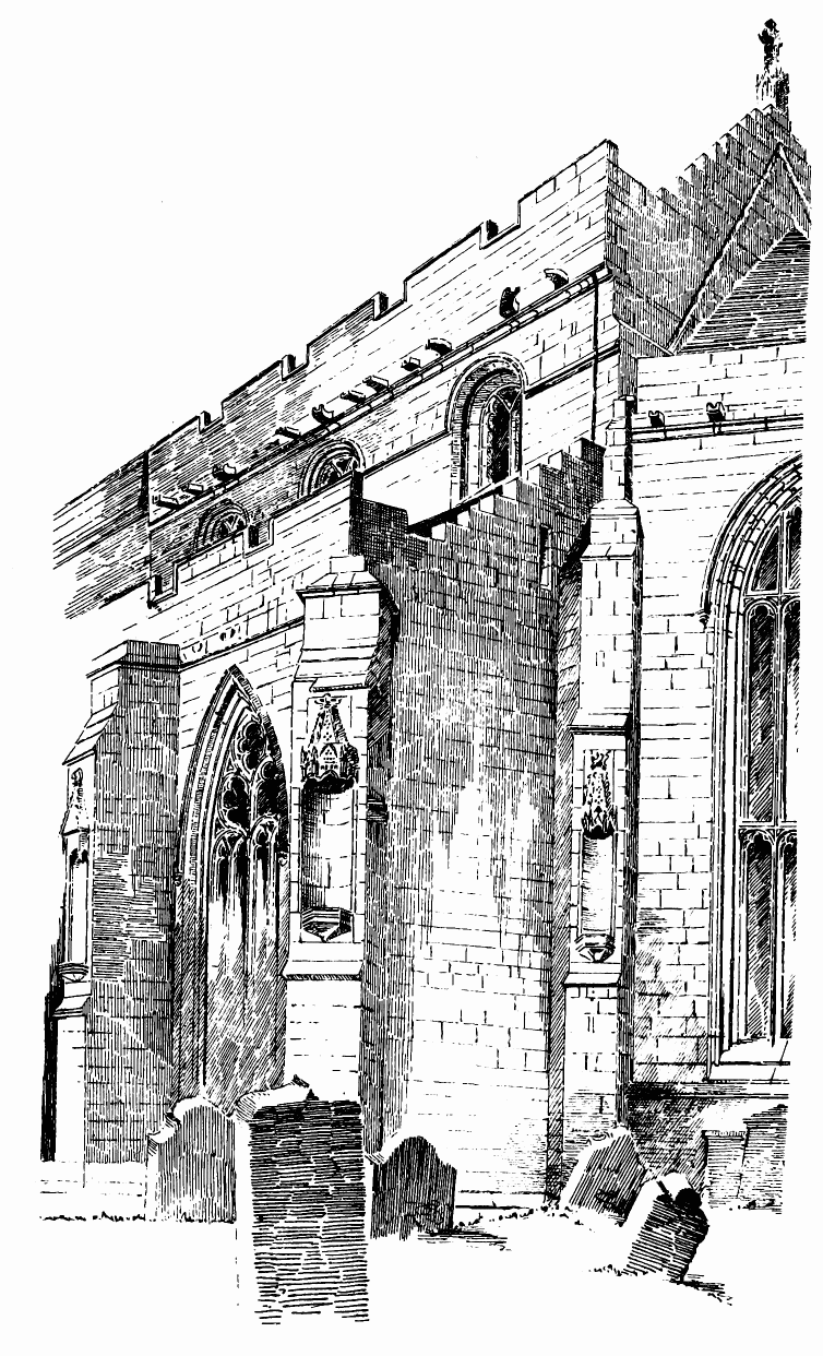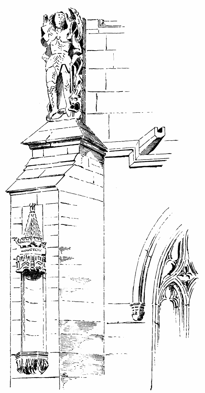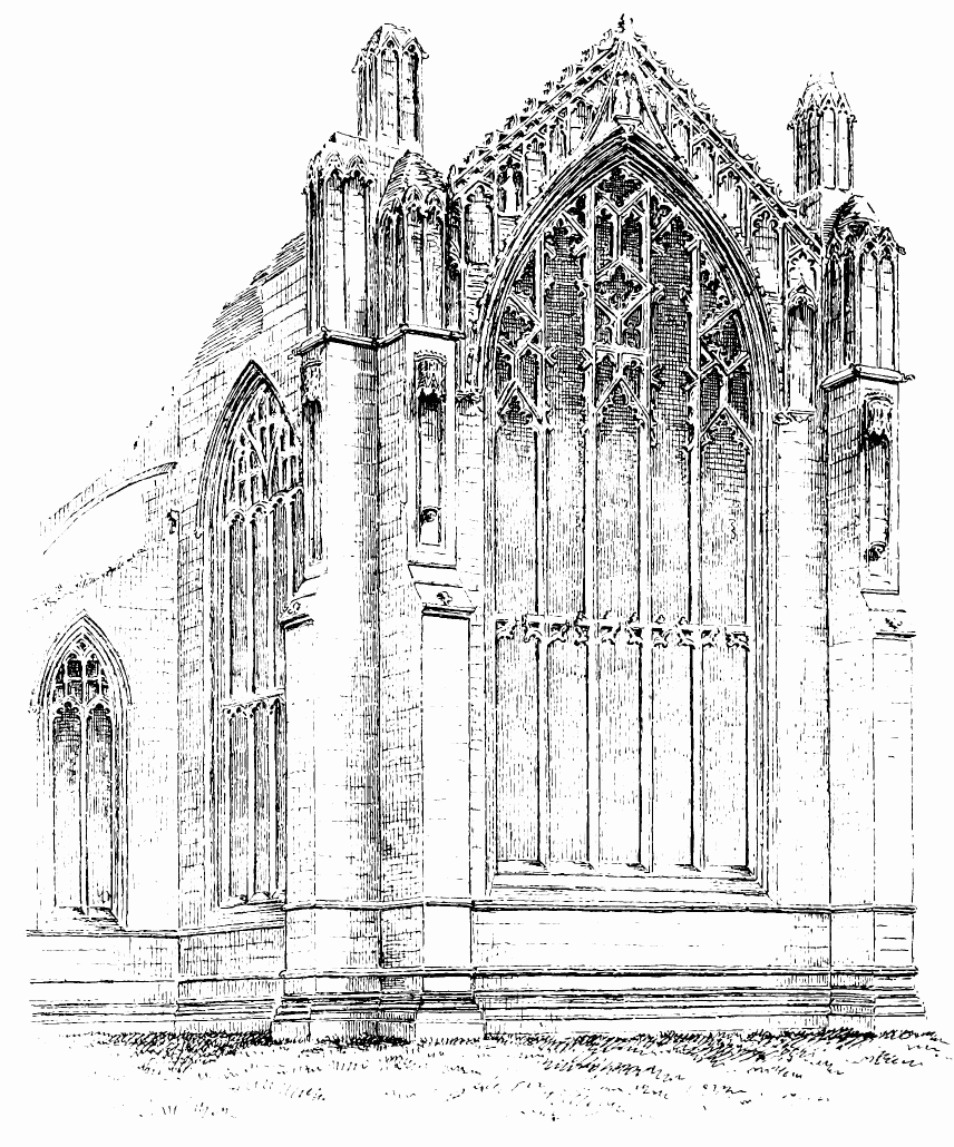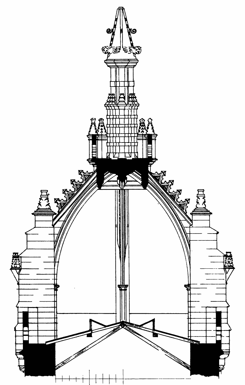 The vaults are counterpoised with suitable flying arches (see Fig. 766) abutting on solid buttresses, loaded with lofty pinnacles, which give them due resistance to the thrusts brought to bear on them. The windows in the south chapel walls (and clerestory of choir) are larger than usual, and are filled with tracery; but there is here also an unnecessary amount of plain wall between the bays, especially in the nave clerestory.