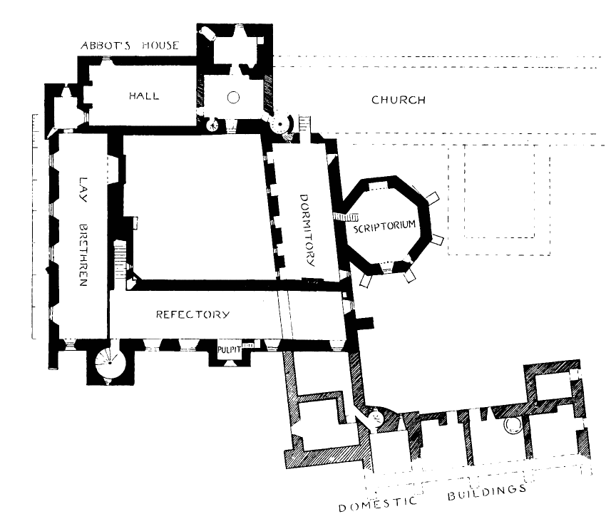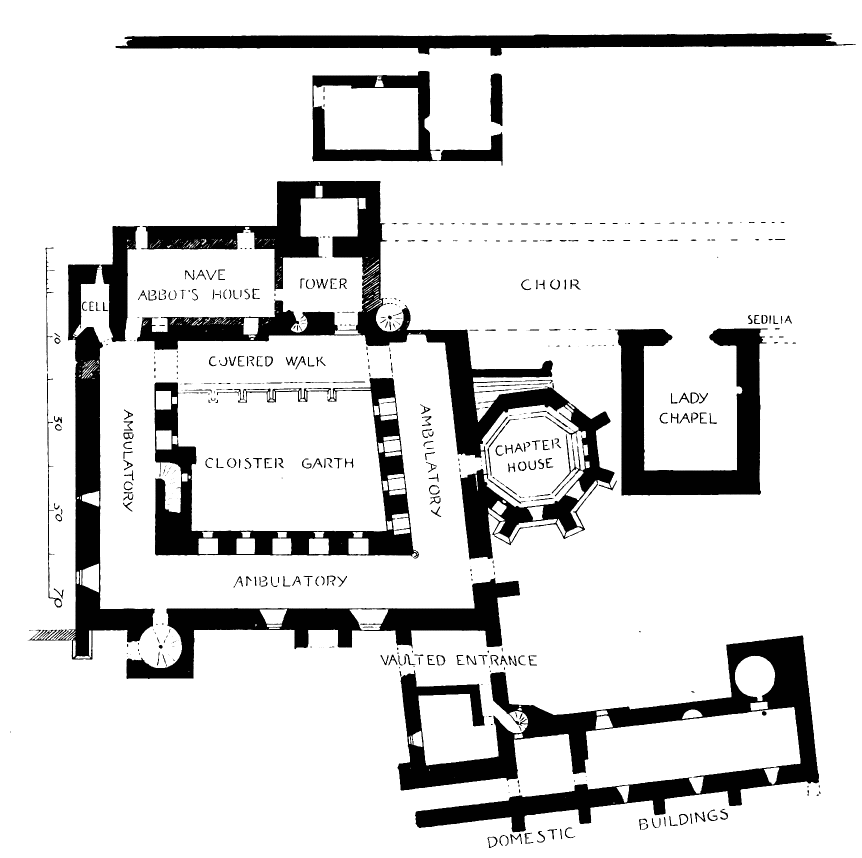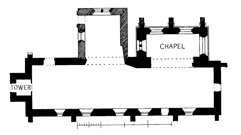 “He laid with a pleasing pavement the whole space not only of the choir, but also of the transept [transversarum capellarum] of the church, along with both sides [lateribus sive panis] of the cloister, and also the outer chapter house [inferius capitulum]. He rebuilt, as it were, from the foundations the fair and remarkable palace within the court of the prior’s lodging, along with the handsome [decentoribus] oratory and chamber which are there situated;{xvi} and likewise domestic manor-houses in their [or his ‘suis’] ‘locaperhendinalia’ [places where he might occasionally have to stay, perendie = the day after to-morrow], such as Ballon, Segy, and Kynmoth.”