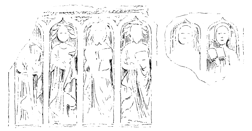 “He [Prior Halderston] adorned the church of his monastery with wonderful and remarkable beauty, both in the carving of the stalls and in the painting of figures. The nave of this church had been erected by his predecessor, the Lord [prior] James Bisset, of worthy memory [who sat from 1393 to 1416], in a sumptuous manner, with rafters and ceilings [tignis et tecturis], but inside it was an empty, vast, and deserted synagogue. He [Halderston] fitted it throughout in becoming manner with glass windows, along with the erection of altars, figures, and decorations and polished pavements.” Lord Bute asks—“Did he add the altar against the screen which crosses the south aisle just west of the eastmost door into the cloister?”
