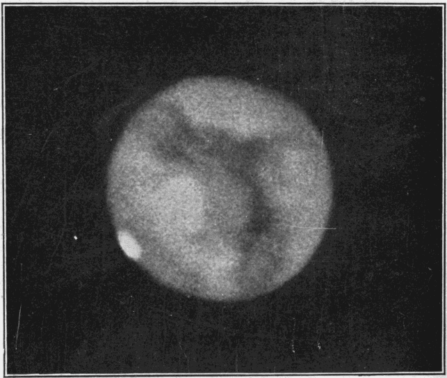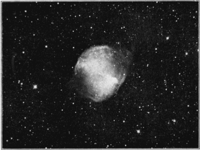 In pre-telescope days nothing was known about the nebulæ. The great nebula in Andromeda, and possibly the great nebula in Orion, are alone visible to the naked eye, but as thus seen they are the merest wisps of light, the same as the larger clusters are. Galileo, Huygens and other early users of the telescope made observations of nebulæ, but long-focus telescopes were not well adapted to this work. Simon Mayer has left us the first drawing of a nebula, the Orion nebula as he saw it in 1612. The [358] vast light-gathering power of the reflectors built by Sir William Herschel first afforded glimpses of the structure of the nebulæ, and if his drawings are critically compared with modern ones, no case of motion with reference to the stars or of change in the filaments of the nebulæ themselves has been satisfactorily made out.