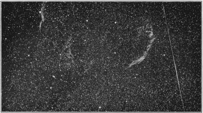 Photography has revealed another extraordinary nebula or group of nebulæ surrounding the stars in the Pleiades, which the deft manipulation of [360] Barnard has brought to light. All the stars and the nebula are so interrelated that they are obviously bound together physically, as the common proper motion of the stars also appears to show. Also in the constellation Cygnus, Barnard has discovered very extensive nebulosities of a delicate filmy cloudlike nature which are wholly invisible with telescopes, but very obvious on highly sensitive plates with long exposures.