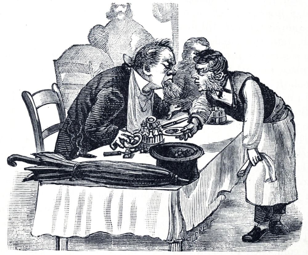 He rattled on about wines, and salads, and so on, and then a bottle of wine that he had ordered came up. He took a little of it in his mouth, and rinsed it, and passed the bottle under his nose, backward and forward, and sniffed critically, and then remarked sagely that it would do, but that it was not quite up to the mark, and that it was difficult to get good wine even in the Rhine country.