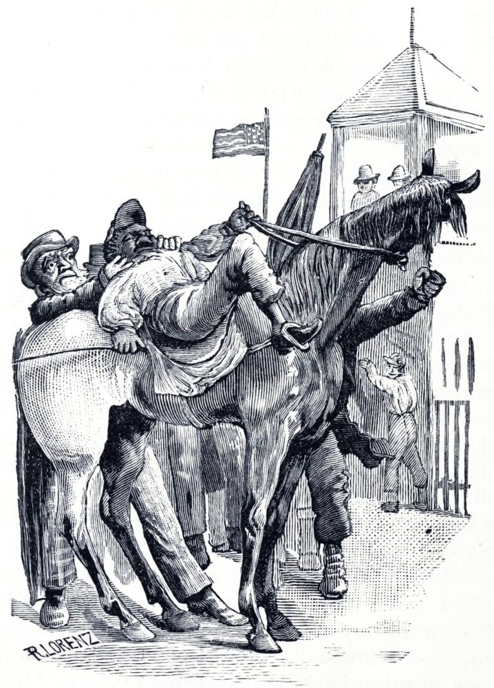 He not only knew all these people, but he never by any means used family names. He did not say, “Mr. Fechter,” it was “Charley,” “Old Charley,” and when he spoke of women it was not “Miss Rose Eytinge,” it was “Rosy.” And he kept on talking of clubs, and horses, and yachts, and fishing, and gunning, and cards, and women, and racing, and “events” of that sort, till Tibbitts pounced down upon him as a cat does upon a mouse.