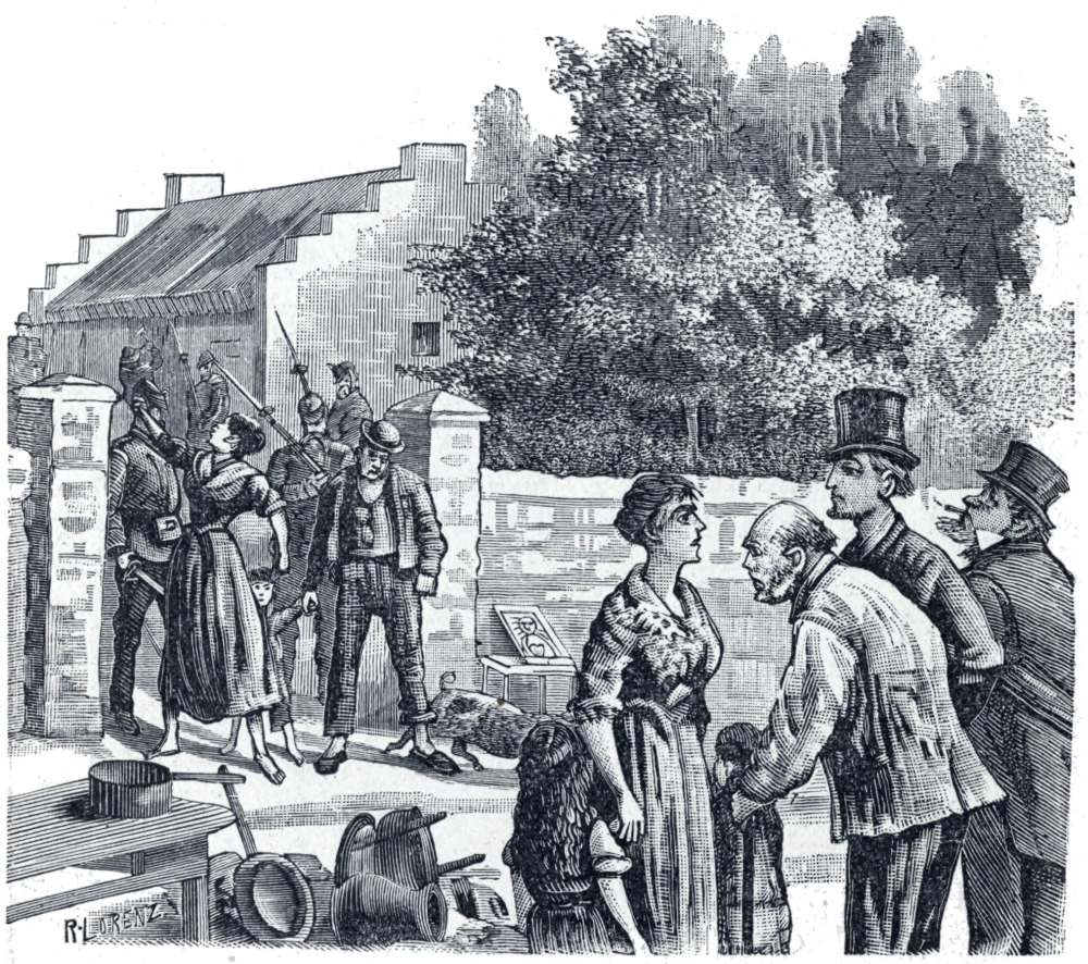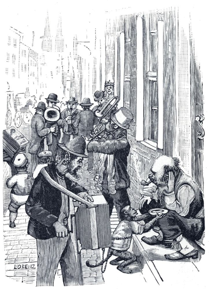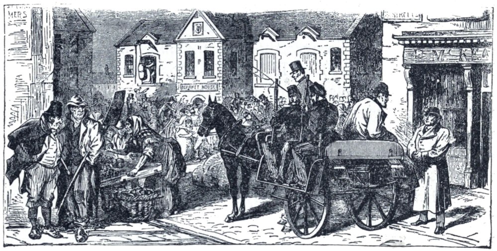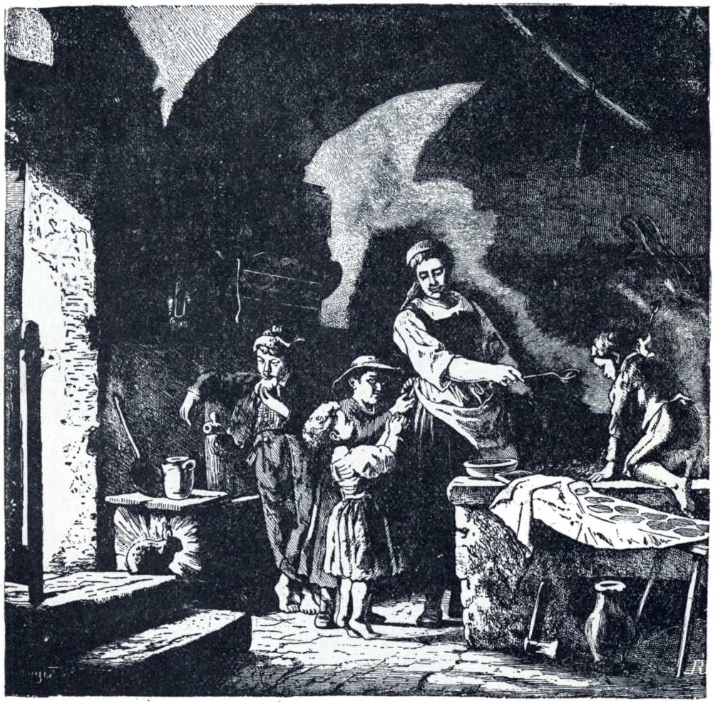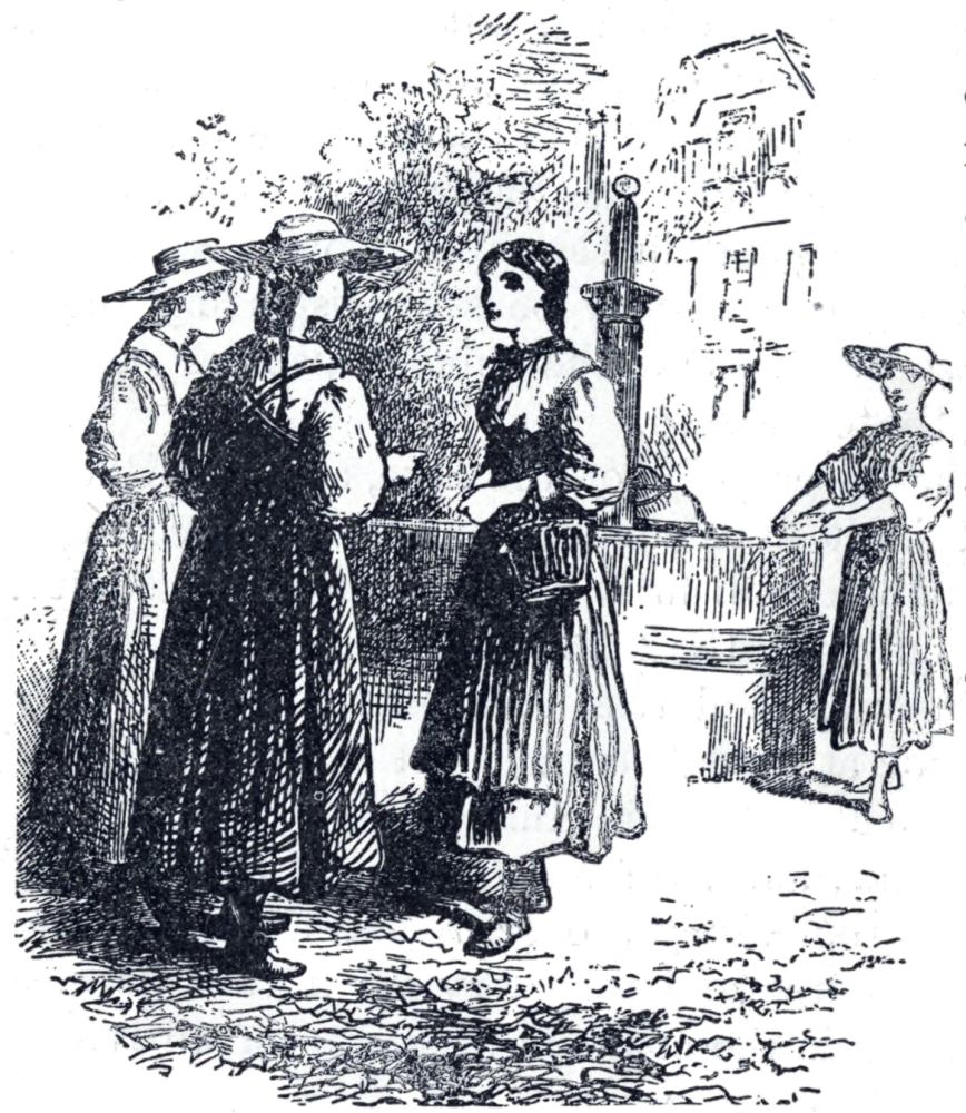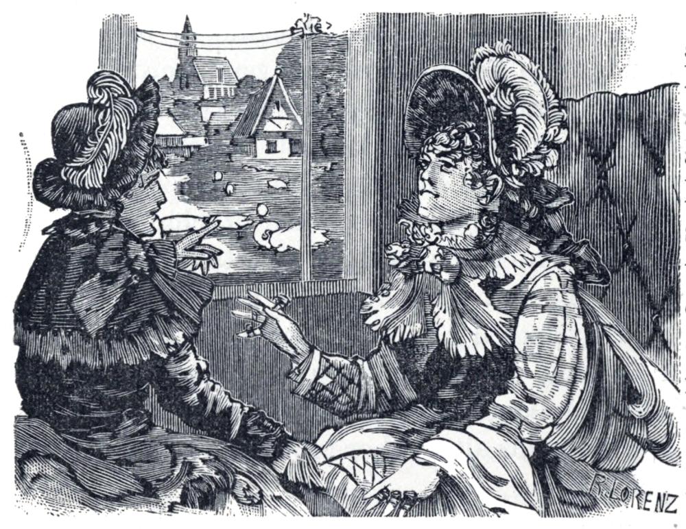 From the Rath-house the visitor turns to the markets, passing through narrow, dirty streets, with high overlapping houses, to the monument of Frederick William III., a huge equestrian statue of the King. Here is the Heumarkt, and a busy sight it is. As far as the eye can reach is a vast concourse of people, buying and selling all manner of things. The women, with their white caps and peculiar dresses, flit hither and yon, talking, laughing and jesting with men, who are arrayed in costumes that suggest the old Rheinish peasants, made familiar by the painters of the old Rheinish school.