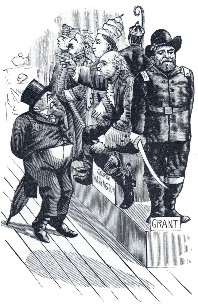 “Me! Oh, I’m from Oshkosh; but I have a branch house in New York too. I go down just once a year to sell live stock, and I pick up more names in the week I stay there than an ordinary man can remember, and I remember all their given names, and I can reel them off just as fast as any Indiana young man I ever met, and I know them just as well. Only I prefer financiers and statesmen to horse men, actors and prize fighters. I am very select. Next year I shall not know anybody under a senator. You may just as well know big men, really great men, as merely notorious ones. Now there’s ‘Lyss Grant and Bob Schenck, and Rufe Ingalls, and Black Jack Logan, you ought to just sit down with them at a game of poker! That’s where you have sport, and as for fishing, Bill Wheeler, till he got spoiled by being Vice-President, he could everlastingly handle a rod, and the way he’d yank ’em out was a caution. He was no slouch. Many a time I’ve—”