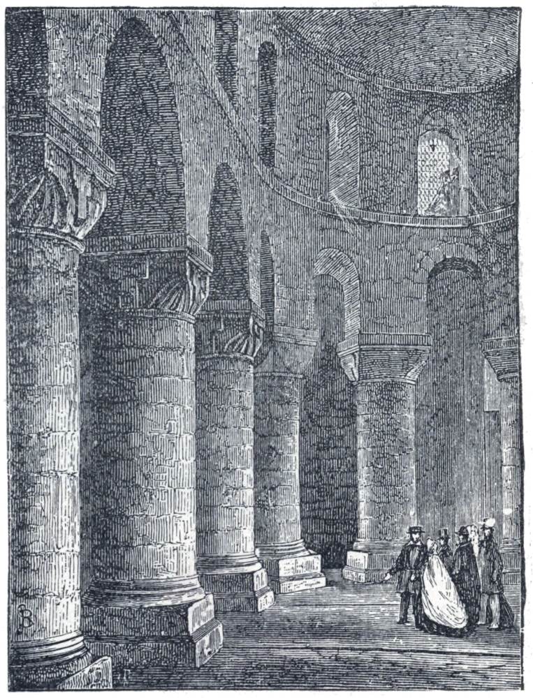 From the cathedral the visitor naturally turns to the other churches, but a hasty inspection of them is all that is required, for, after the cathedral, everything else loses its interest. There are some very imposing edifices, which, if they did not suffer so by comparison with the cathedral, would be considered fine specimens of early architecture. For instance, the Gross St. Martin, consecrated in 1172, which is a massive building, with an imposing tower surrounded by four corner turrets.