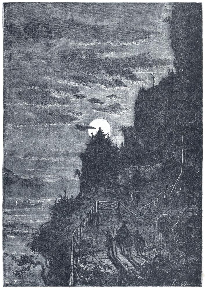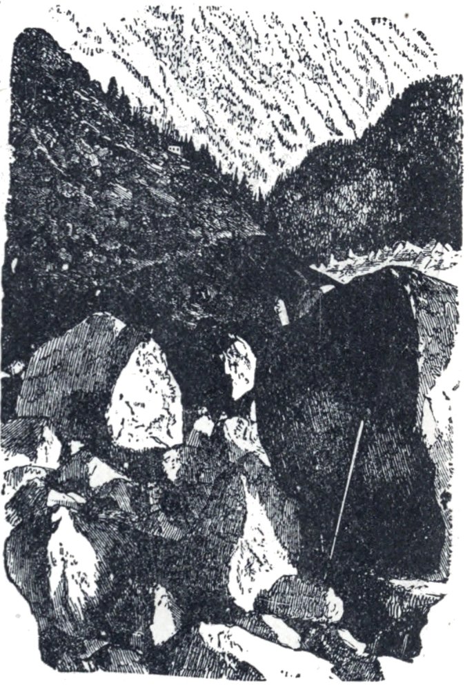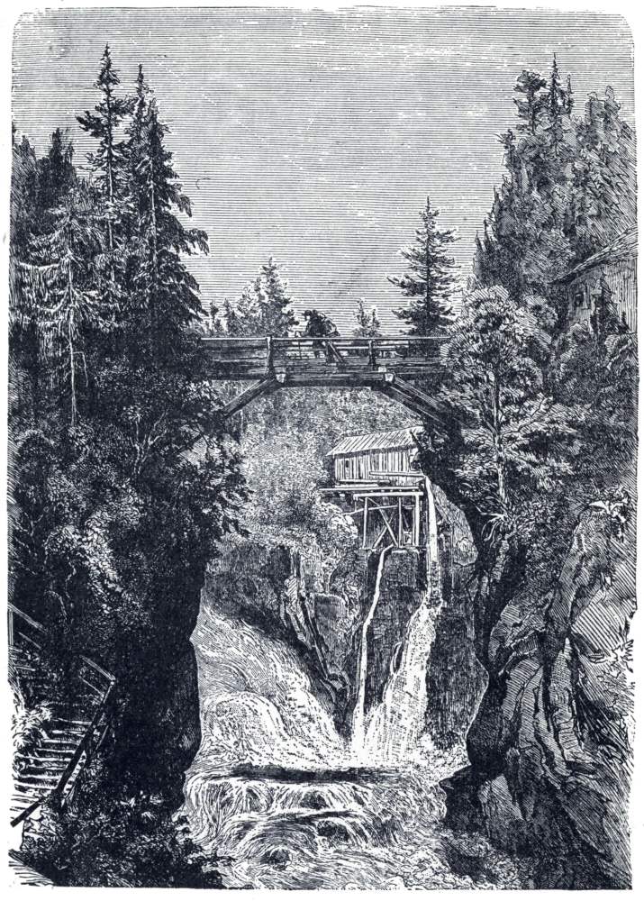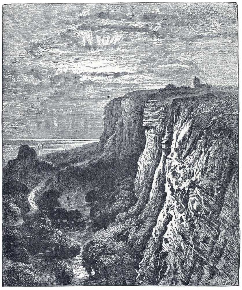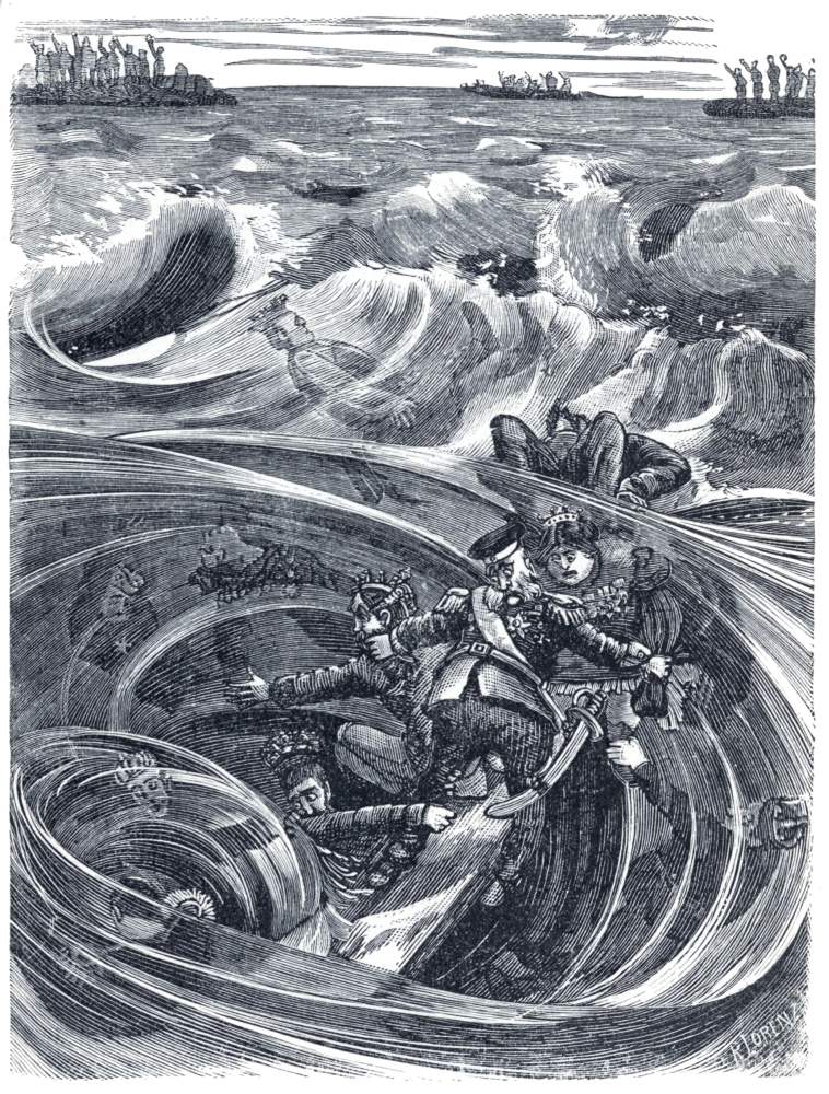 At another time a maiden loved a young man who was to go to Palestine to fight the Saracens. During his absence she was so persecuted by the other young men that she retired to a convent near the Lurlie, and waited for her lover. At last she saw a boat approaching filled with men, and among them, gorgeously attired, was her young man. Unfortunately to get to where she was the boat had to come very near the rock, the water-demons raised the whirlpool, the beautiful nymph presiding with a mocking smile, and they seized the doomed craft and hurled it against the rock, and down it went, and all on board were lost. The hapless maid plunged into the seething waves after her lover, and as she went under the flood, the nymph of the Lurlie appeared on the surface, beautiful as ever, but with the laugh that was frightfully harsh and discordant. She could not bear to see earthly young maids happy.