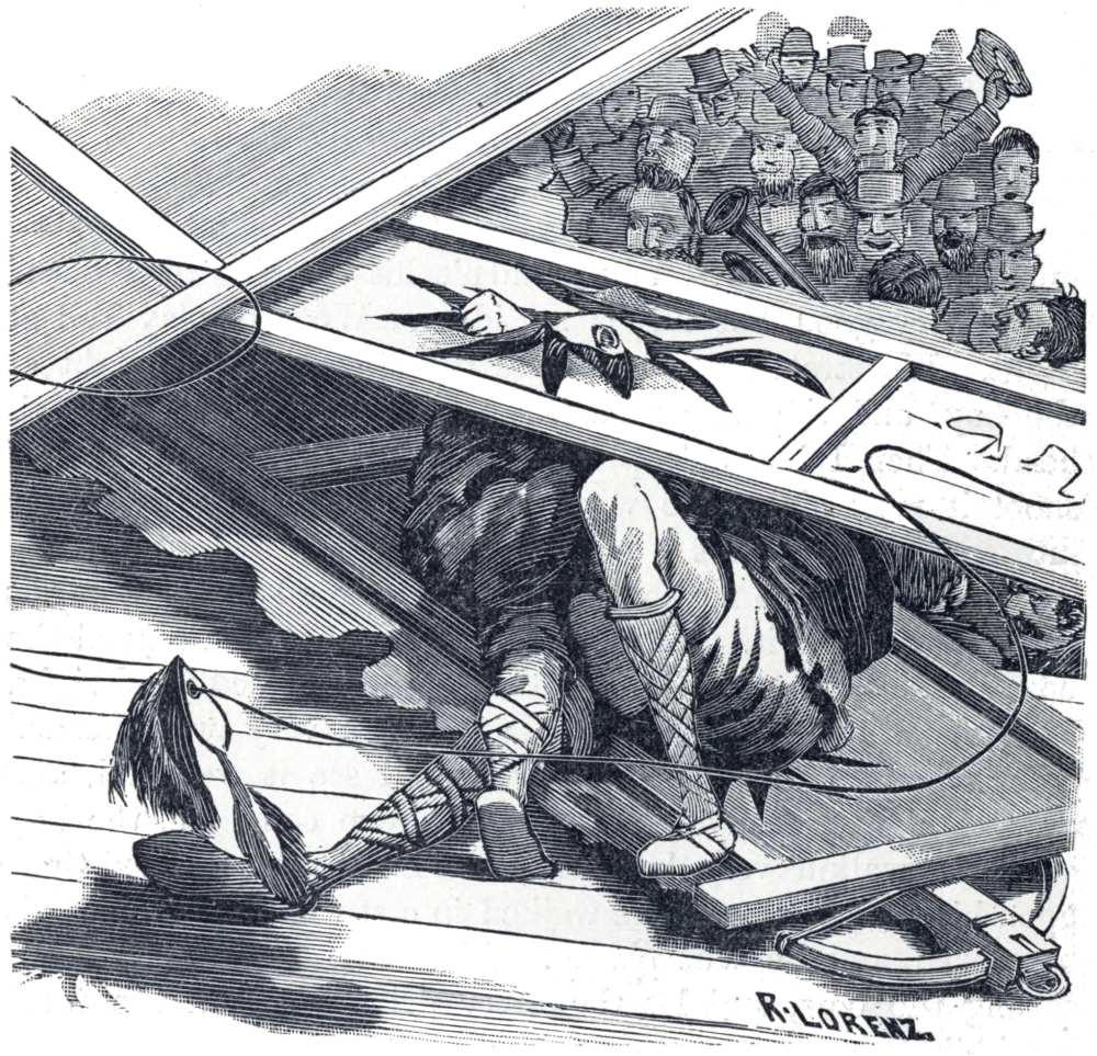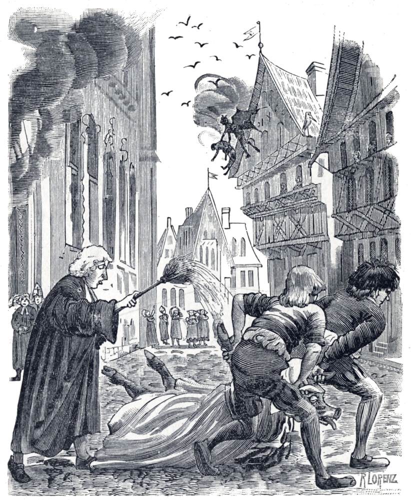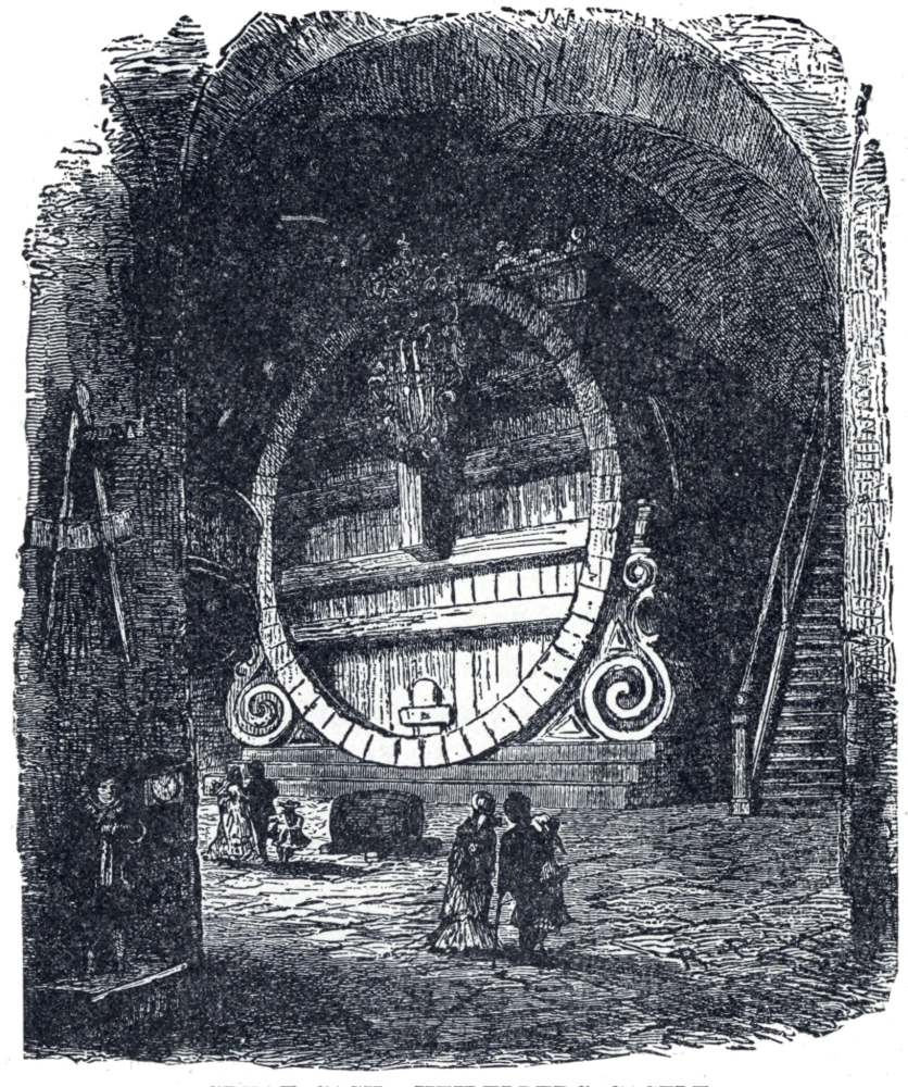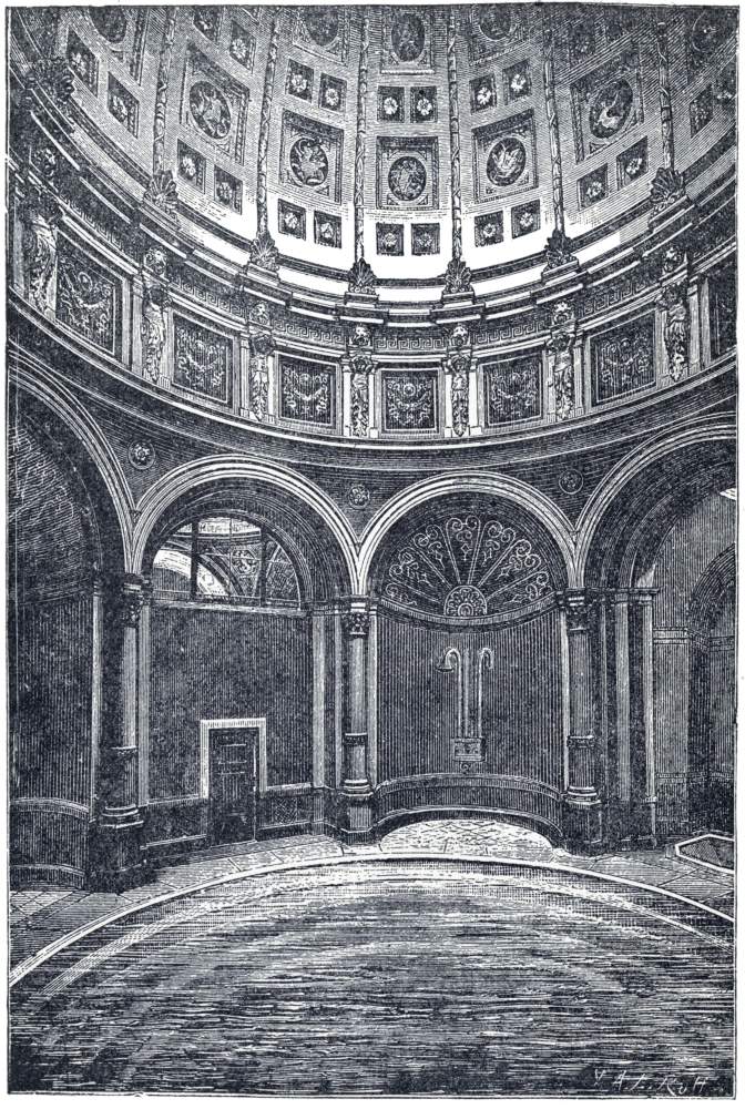 As she entered there was a terrific noise. Satan appeared, broke the neck of the unfortunate in the box, flying off, presumably, with her soul. He then flew to the architect’s house and broke his neck. As Satan disappeared from the church, the woman arose from the box, went into the building to pray, while the servants carried from the dome the carcass of a pig, which had been enveloped in a woman’s gown, and sacrificed.