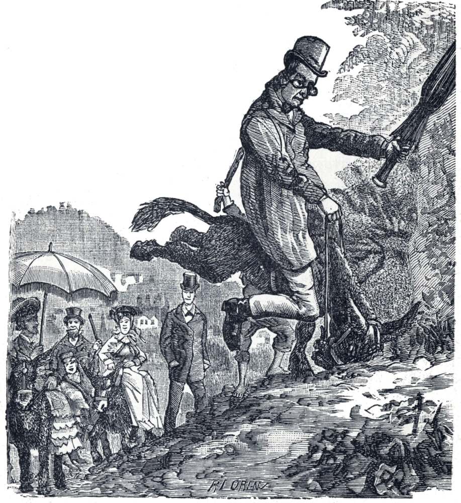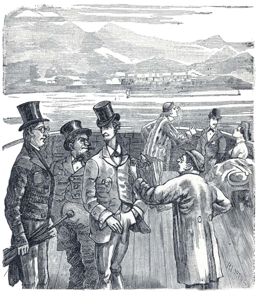 We had him on our steamer down the Rhine. He was six feet high, with a moustache, and a billy-cock hat, and pointed shoes, and short coat, and all that, and he talked to everybody.